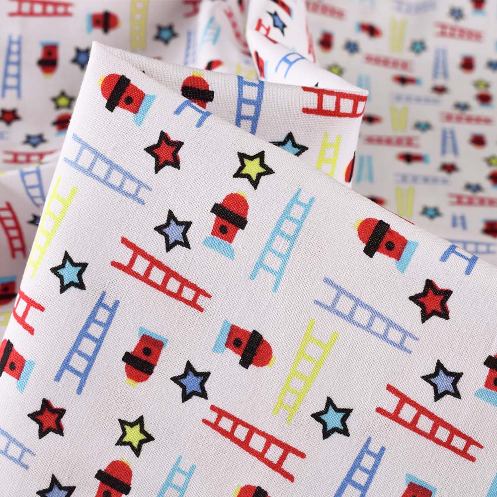 Коттон "Druck" белый в красные, голубые, желтые звезды и лестницы ш.140 купить в розницу и оптом