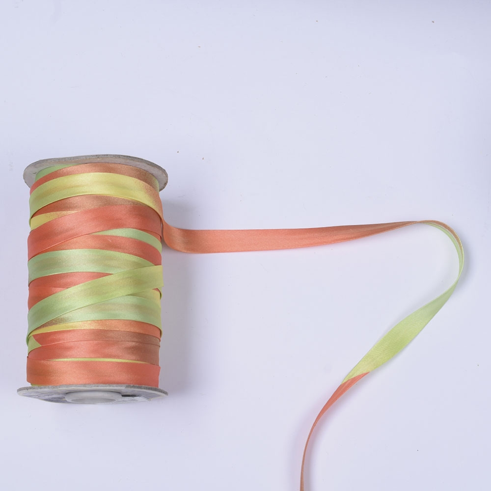 Косая бейка атласная 16мм (5/8") радуга желто-оранжевая. Страна производитель: Китай.