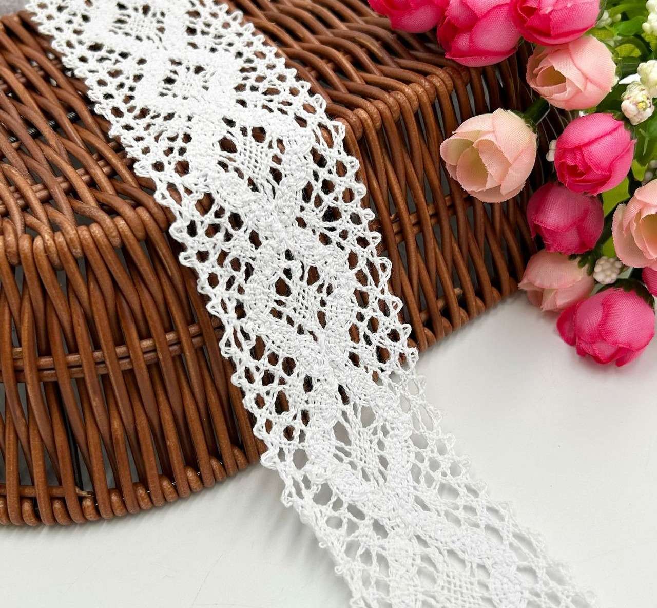 Кружево хлопковое белое 45мм купить в розницу и оптом