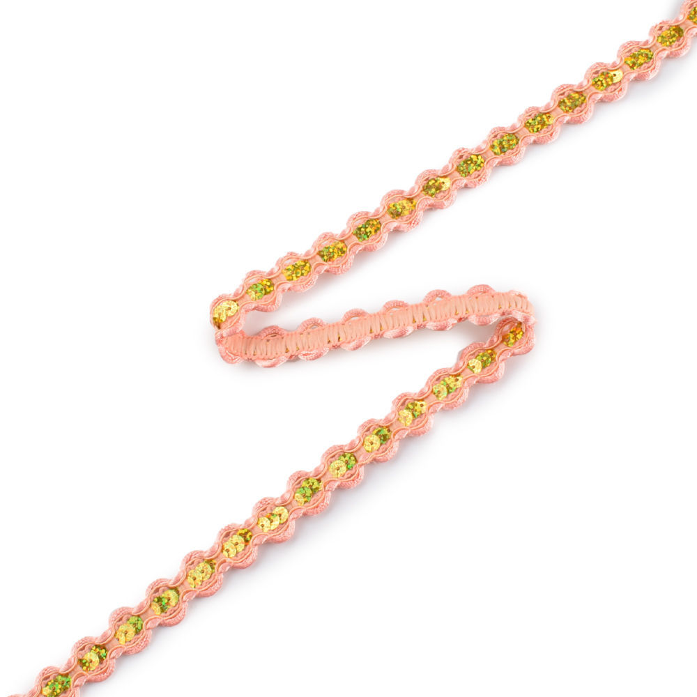 Тесьма с пайетками плетеная 15мм персиковая. Страна производитель: Китай.
