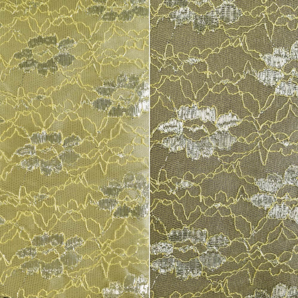 Гипюр желтый с серебристым люрексом цветы купить в розницу и оптом
