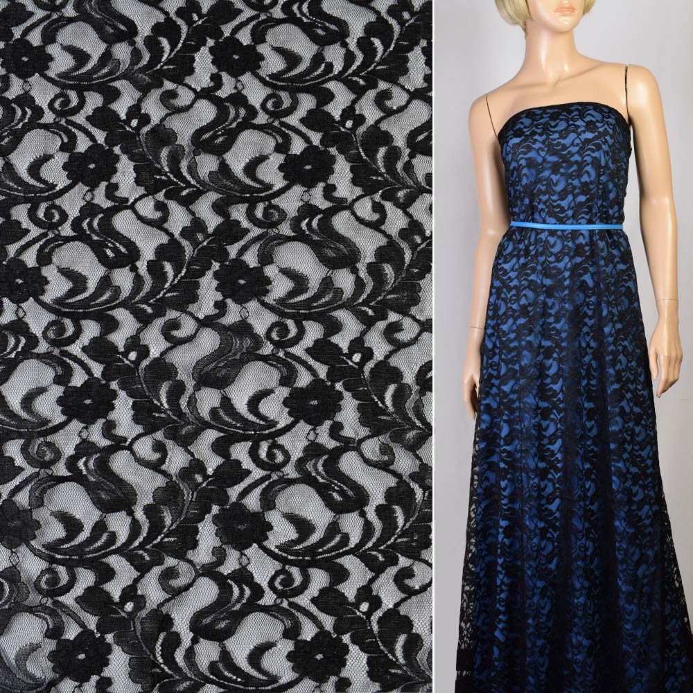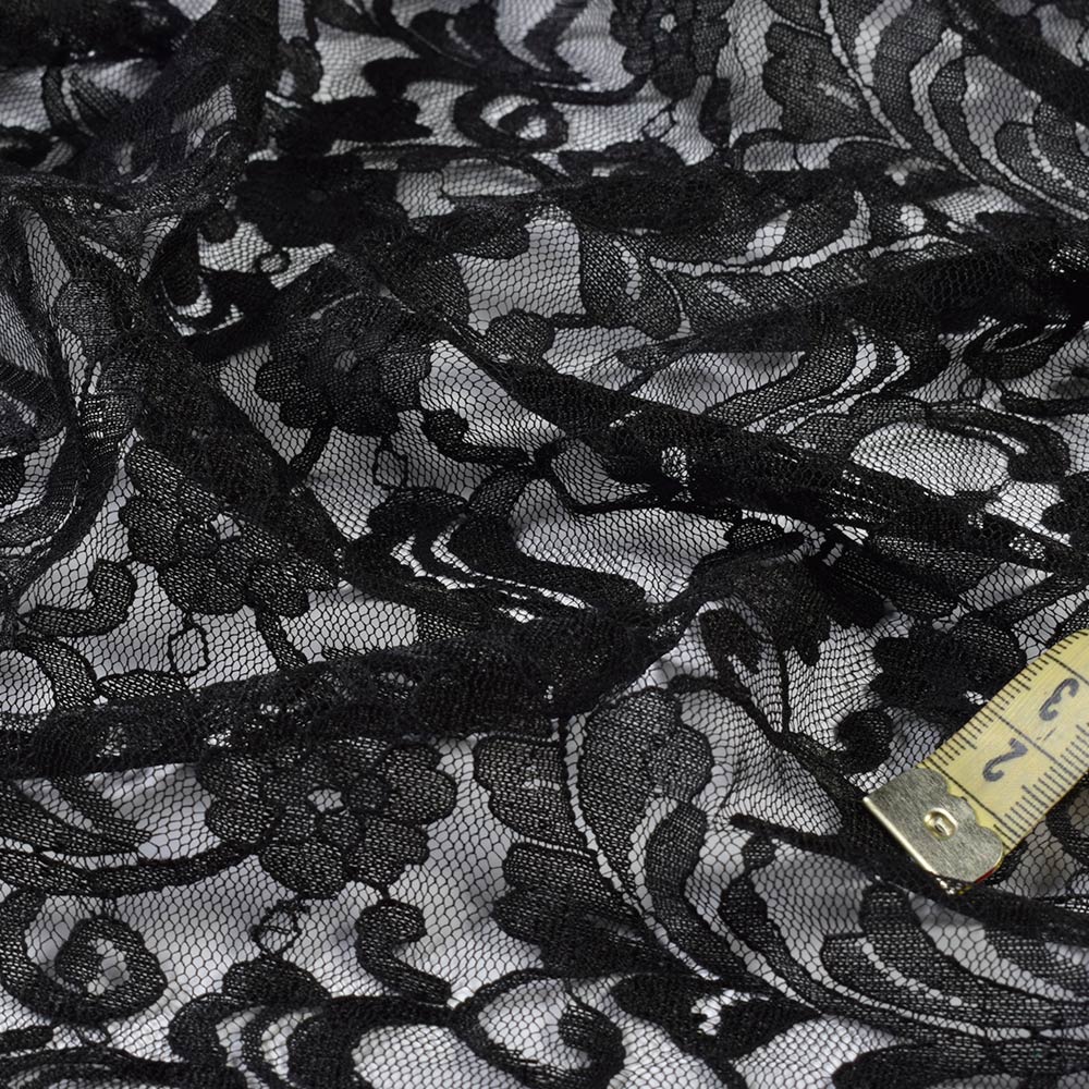 Гипюр стрейч черный с цветами и веточками ш.150 купить в розницу и оптом
