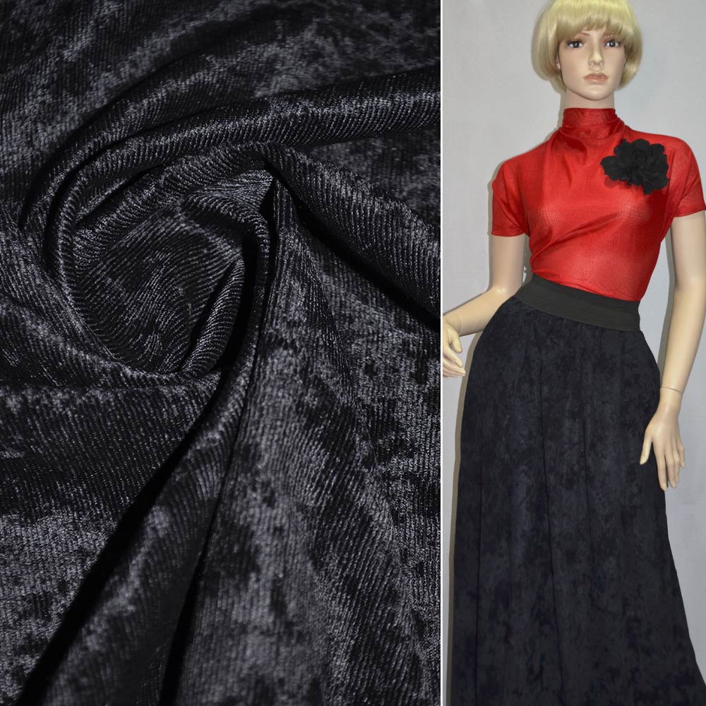 Вельвет-велюр синий темный, ш.150 см. Состав ткани: Вискоза-20, Полиамид-40, Полиэстер-40. Плотность ткани: 268 г/м.кв. Страна производитель: Южная Корея. Это прочная ткань, устойчивая к механическим воздействиям, имеет хорошую теплоизоляцию. Велюр ноский, не подвергается каким-либо деформациям и изменениям в процессе носки и стирок. Отлично пропускает воздух, не теряет красивый внешний вид и форму. Одежду из велюра не требуется гладить, поскольку ткань не мнется. Широко используется для пошива одежды как для взрослых, так и на детей, для пошива бальных платьев, что придает им богатый вид.