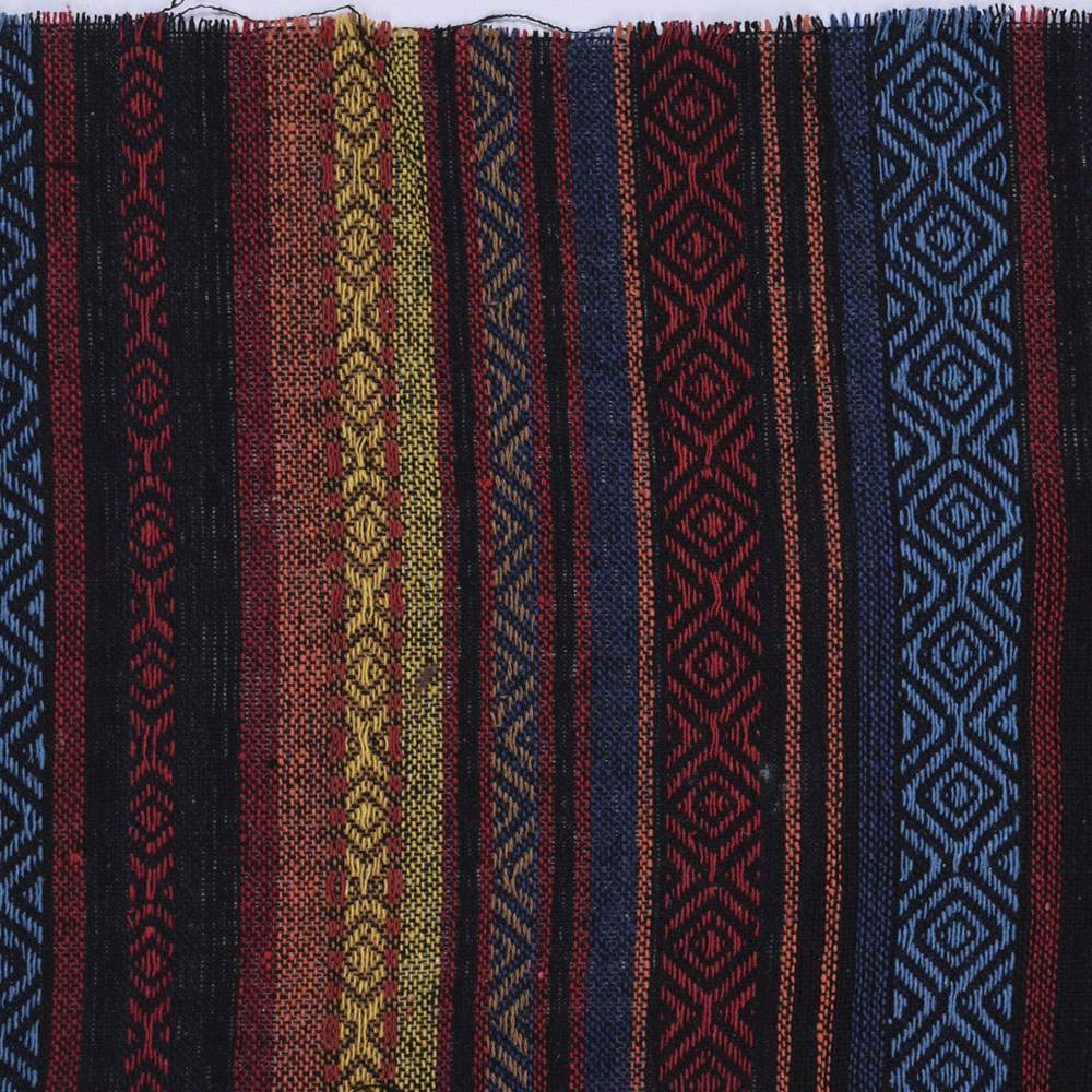 Ткань этно красный, голубой орнамент, оранжевые, желтые полоски, ш.150. Состав ткани: Вискоза-20, Лён-40, Хлопок-40. Плотность ткани: 260 г/м.кв. Страна производитель: Южная Корея. Ткань средней плотности, приятная на ощупь, комфортная в носке. Украшена этно орнаментом. Материал гигроскопичный, воздухопроницаемый, прочный, устойчив к носке, стирке и глаженью. В складках и сборках не имеет значительного формообразования, ложится мягко и пластично. Подходит для пошива брючных костюмов свободного кроя, пиджаков, платьев, юбок, сарафанов, рубашек, домашнего текстиля.
