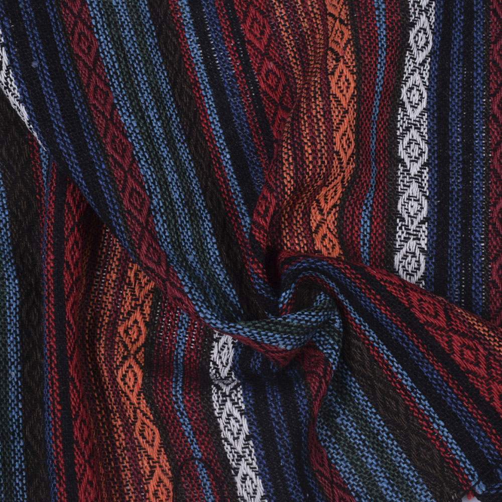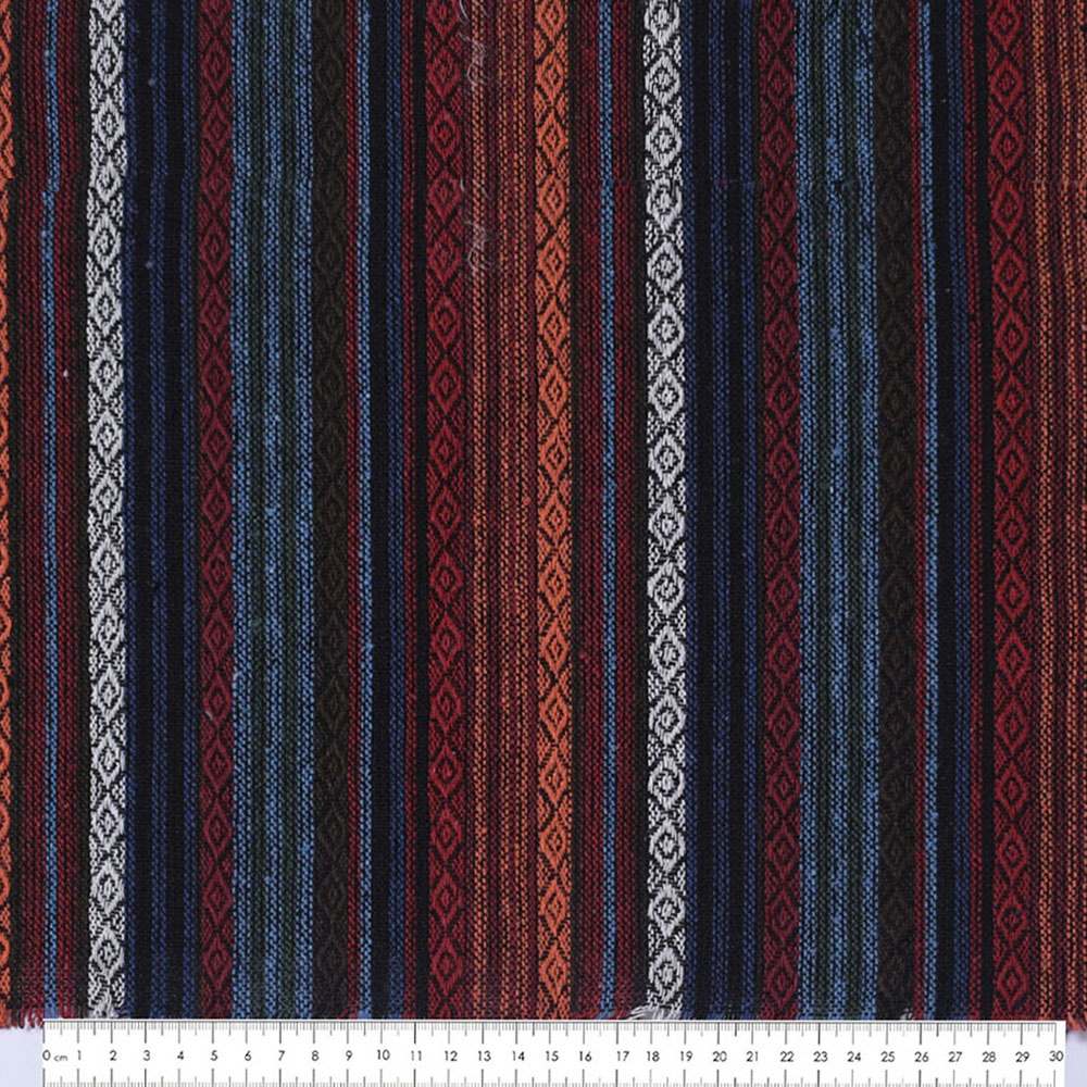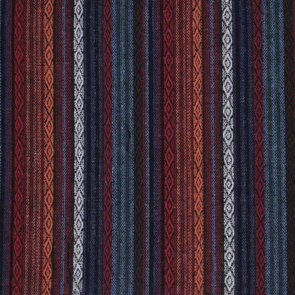 Ткань этно оранжевый, красный, белый орнамент, цветные полоски ш.150. Состав ткани: Вискоза-20, Лён-40, Хлопок-40. Плотность ткани: 260 г/м.кв. Страна производитель: Южная Корея. Ткань средней плотности, приятная на ощупь, комфортная в носке. Украшена этно орнаментом. Материал гигроскопичный, воздухопроницаемый, прочный, устойчив к носке, стирке и глаженью. В складках и сборках не имеет значительного формообразования, ложится мягко и пластично. Подходит для пошива брючных костюмов свободного кроя, пиджаков, платьев, юбок, сарафанов, рубашек, домашнего текстиля.