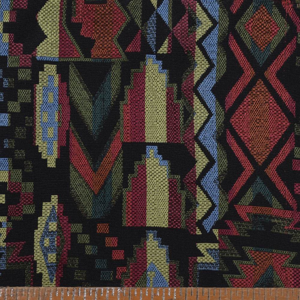 Гобелен черный в зелено-желто-бордовый геометрический узор ш.152 купить в розницу и оптом