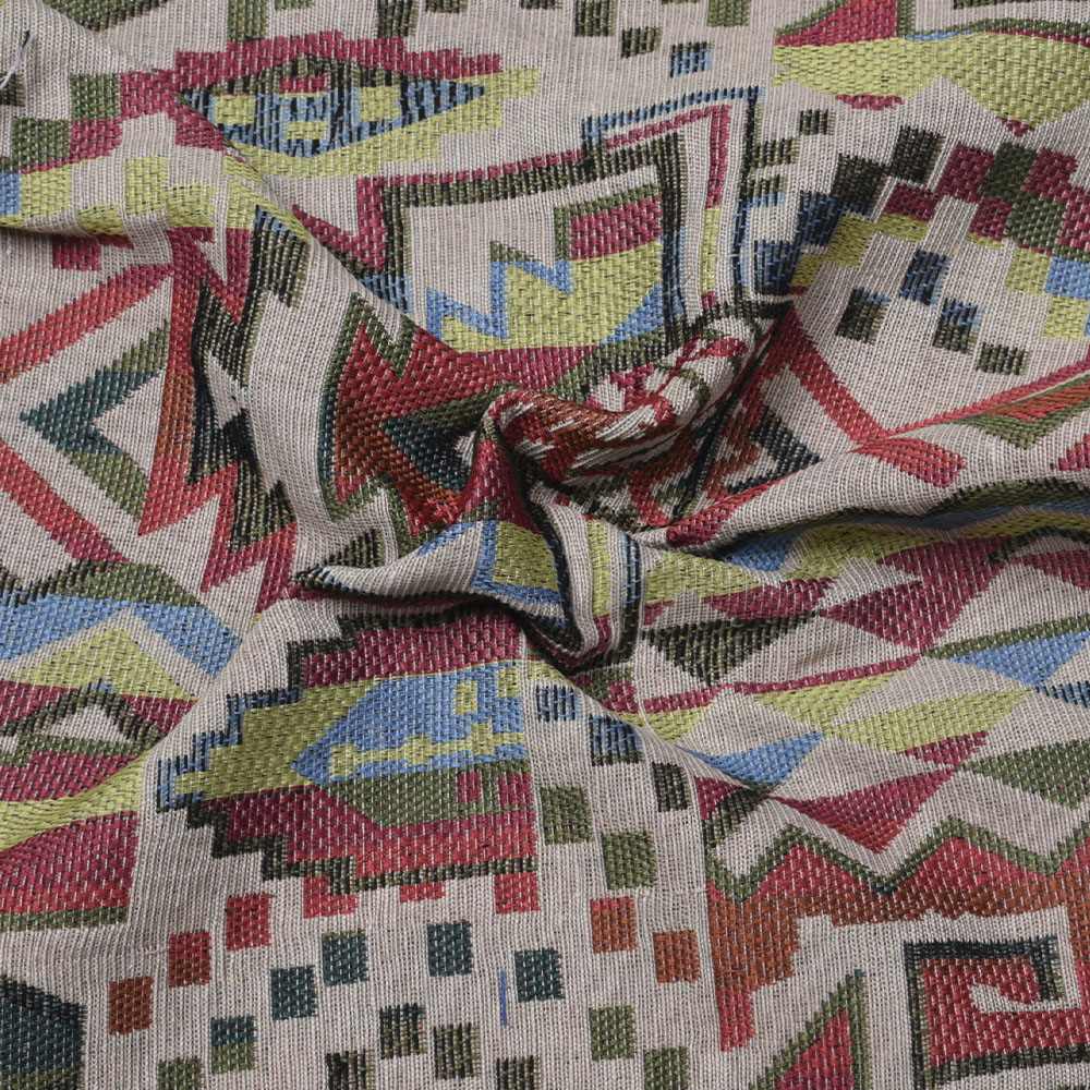 Гобелен молочный желто-сине-красный геометрический узор ш.153. Состав ткани: Лён-30, Полиэстер-40, Хлопок-30. Плотность ткани: 265 г/м.кв. Страна производитель: Южная Корея. Гобелен - это плотная жаккардовая ткань, украшенная ярким орнаментом. У нее повышена износостойкость, формоустойчивость. Гобелен простой в уходе, не линяет, обладает антистатическими свойствами - не притягивает к себе пыль. Используется для изготовления мебельной обивки, декоративных подушек и валиков, штор, покрывал, сумочек и различных аксессуаров.
