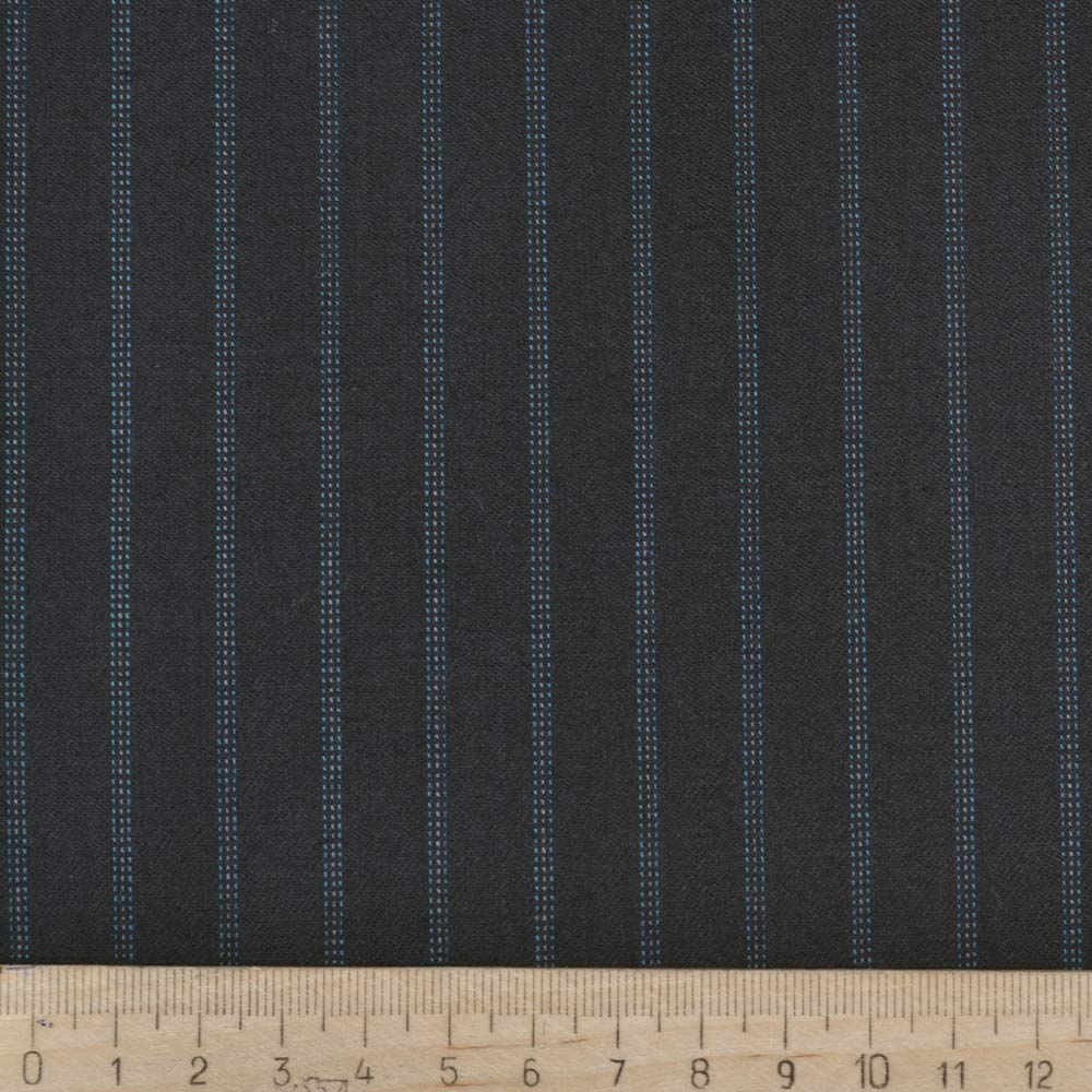 Шерсть костюмная в полоски голубые черная, ш.158 купить в розницу и оптом