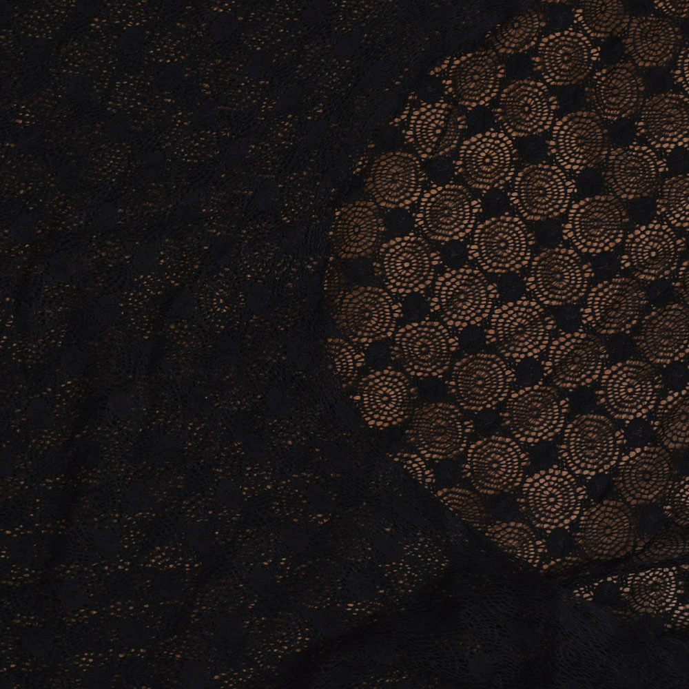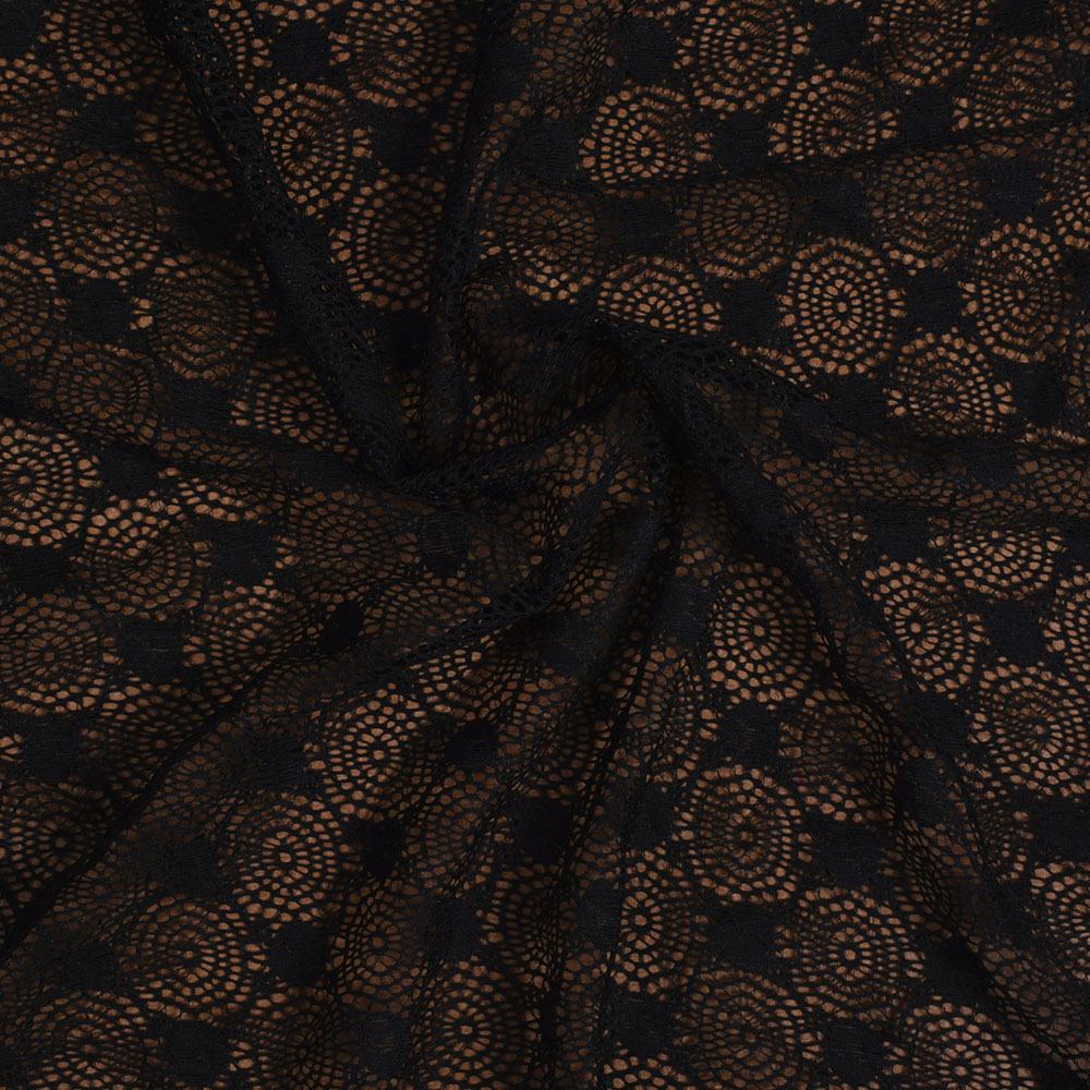 Кружевное полотно стрейч круги с цветами черное (уценка) ш.150 купить в розницу и оптом