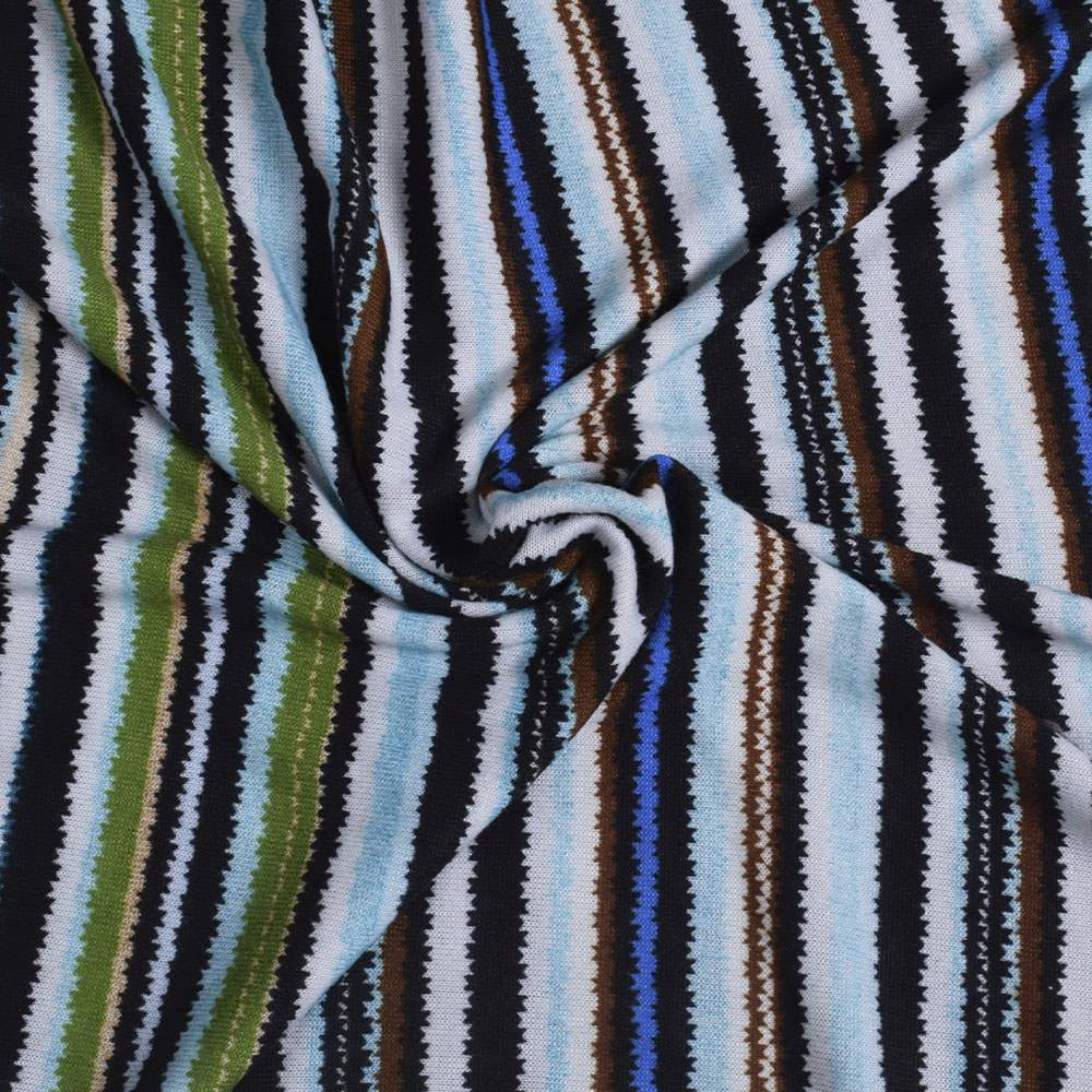 Трикотаж в разноцветные полоски зеленые, голубые, черно-белые (уценка) ш.160 купить в розницу и оптом