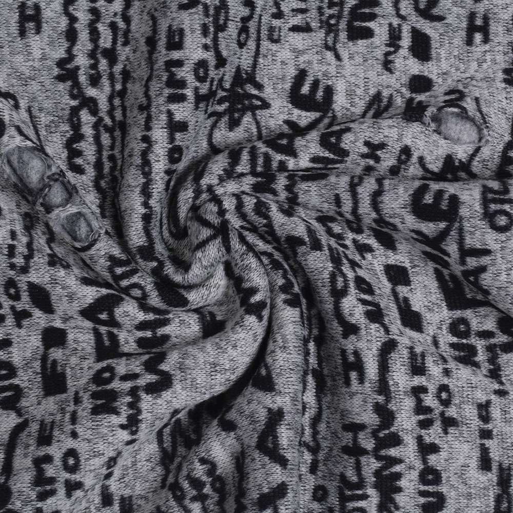 Трикотаж вязаный с начесом серый светлый с черными буквами (уценка, дефекты) ш.170 купить в розницу и оптом