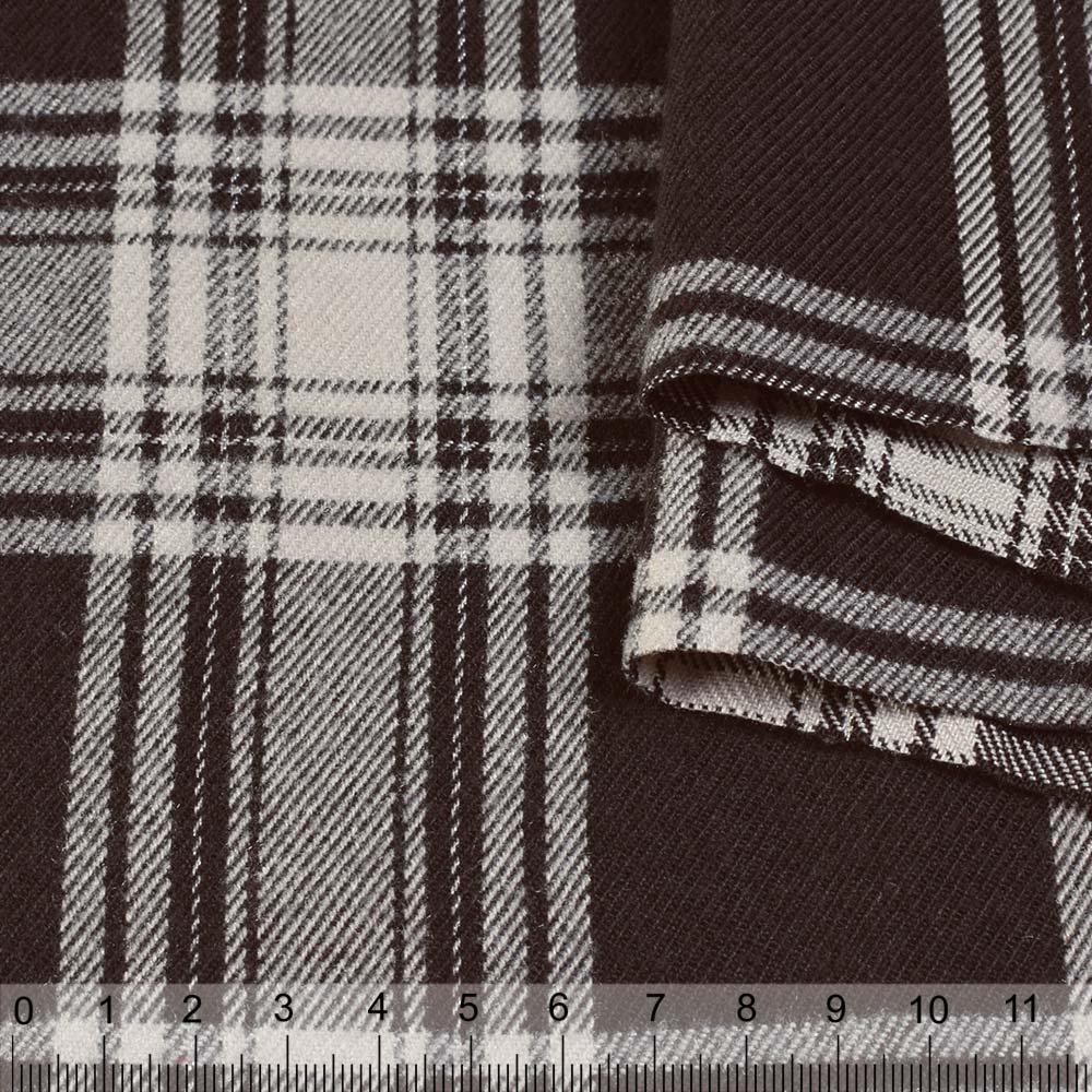 Шотландка с начесом коричневая в белую клетку с метанитью ш.150. Состав ткани: Вискоза-10, Метанить-1, Полиакрил-60, Полиэстер-29. Плотность ткани: 324 г/м.кв. Страна производитель: Южная Корея. Представляет собой плотное, гладкое полотно. Непрозрачная, держит форму. Материал хорошо пропускает воздух и имеет малую сминаемость. Ткань идеальна для жакета, платья-футляр, юбки-карандаш, брюк. Не мнётся, износоустойчива, не требует подкладочной ткани, отлично ложится в швах, из нее получаются красивые жакеты. Универсальна - для вечернего наряда и для повседневного костюма.