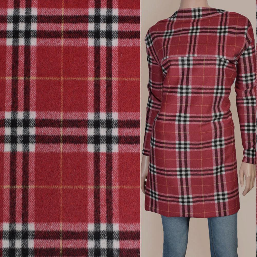 Пальтовая ткань с ворсом в клетку черно-белую + желтую красная, ш.155 купить в розницу и оптом