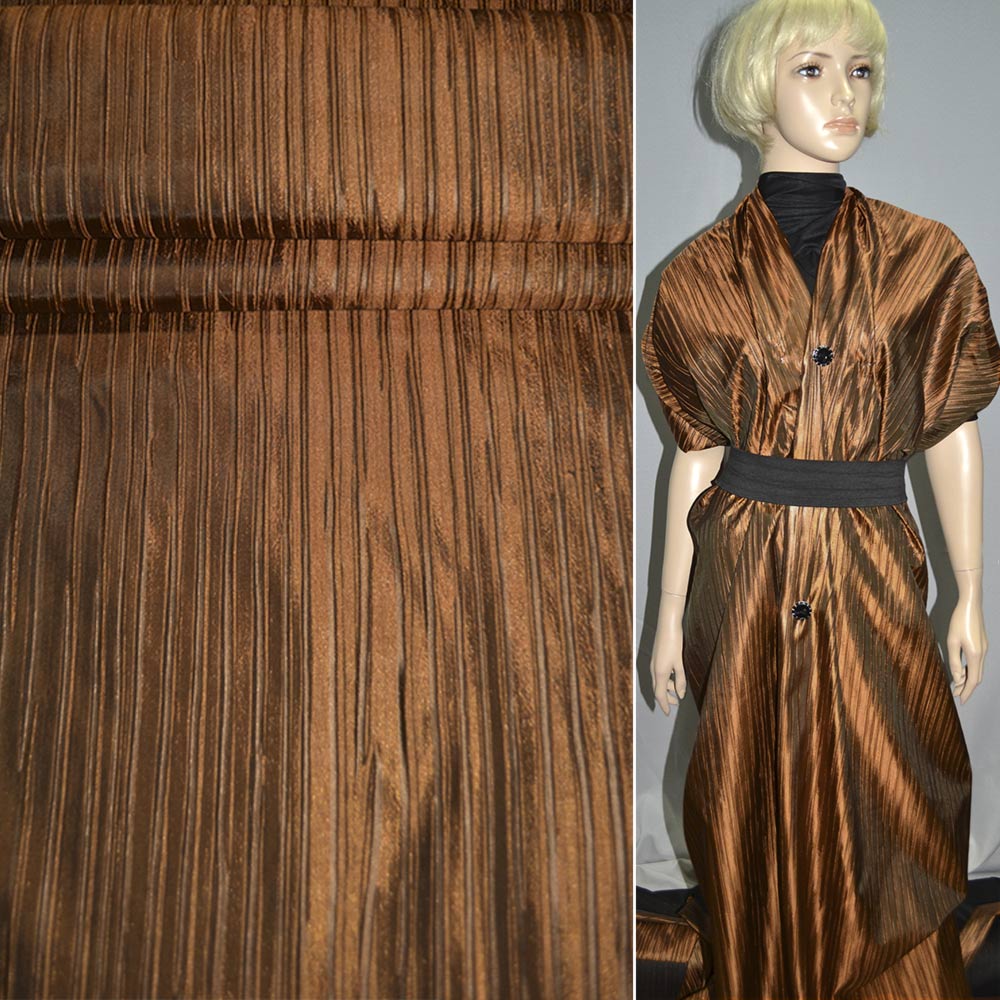 Тафта жатая коричнево-золотистая на трикотажной основе ш.150 купить в розницу и оптом