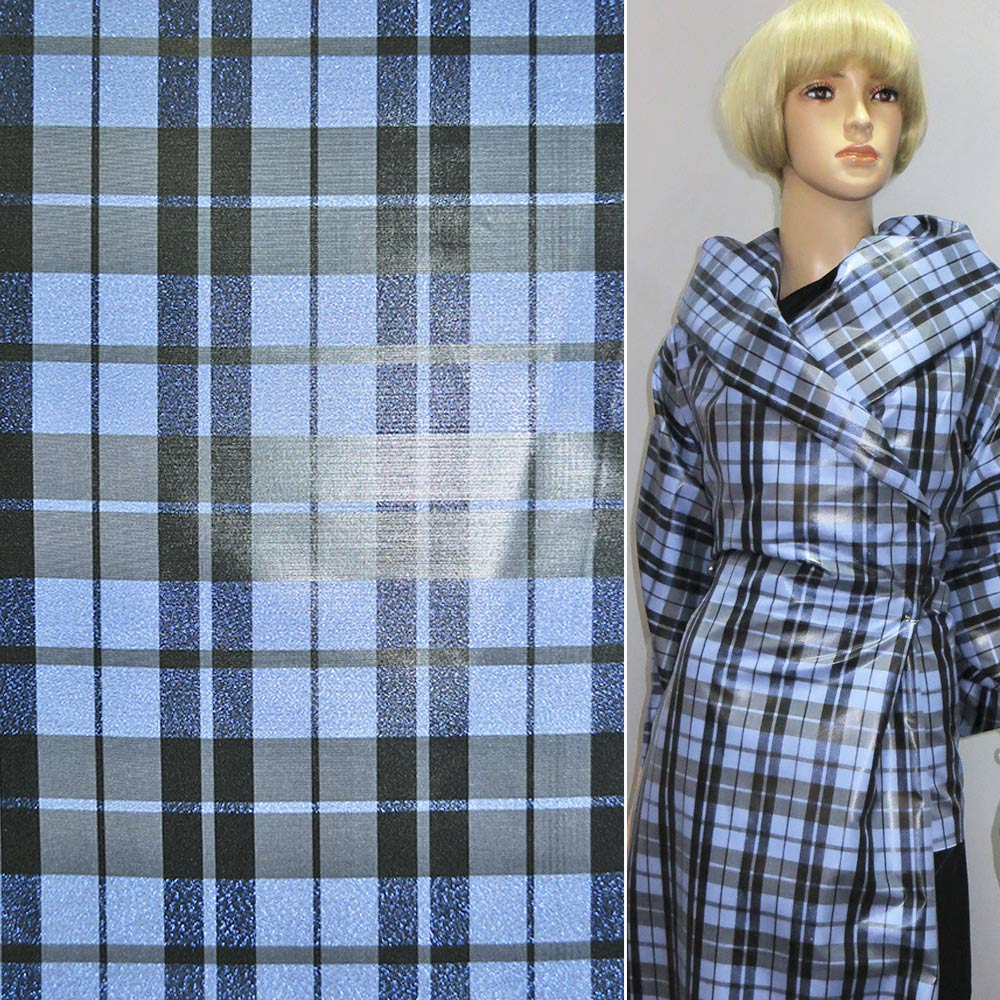 Ткань плащевая в черно-фиолетовую и серую клетку с люрексом ш.140 купить в розницу и оптом