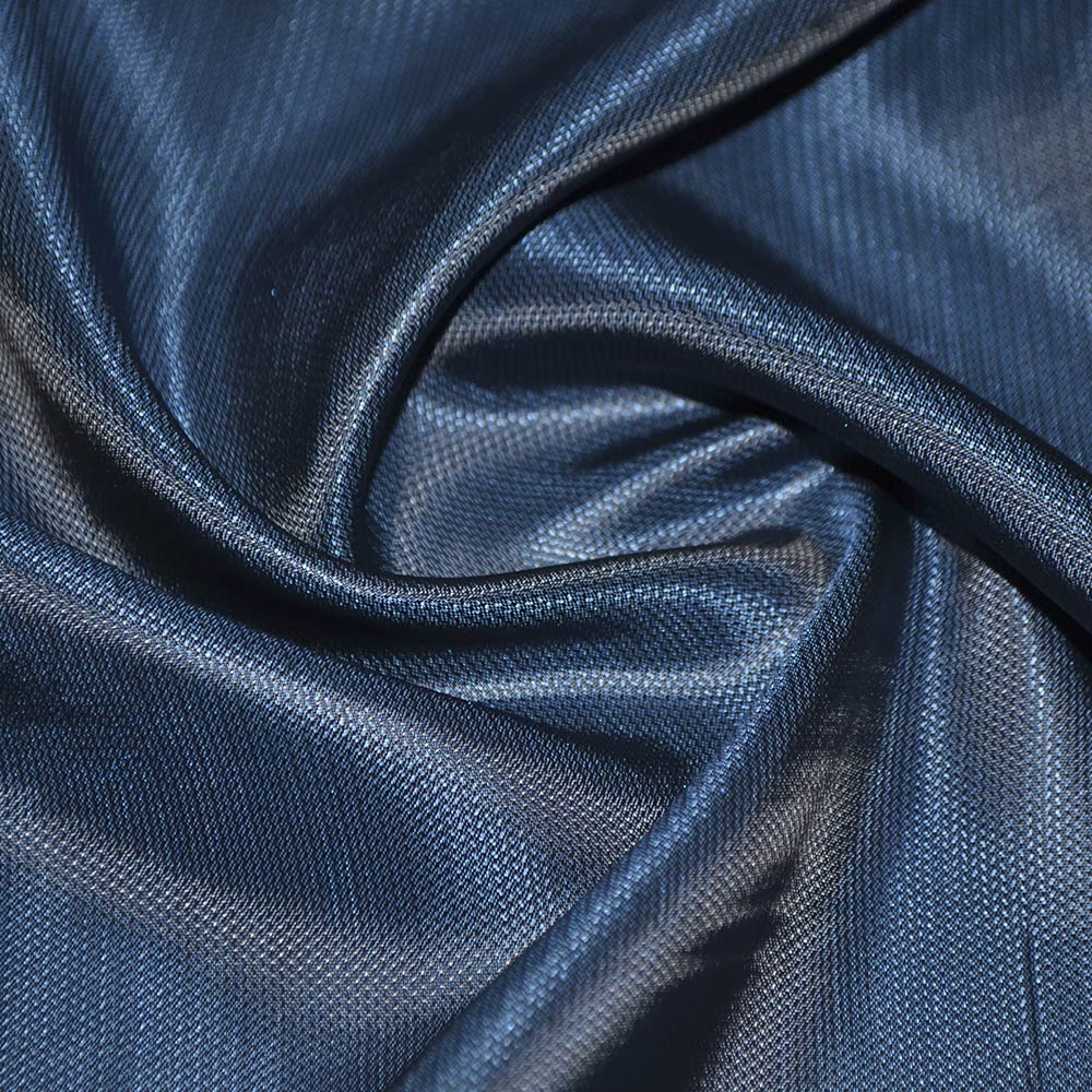 Вискоза жаккардовая синяя. Состав ткани: Вискоза-100. Плотность ткани: 80 г/м.кв. Страна производитель: Германия. Блестящая фактурная ткань отлично подходит для пошива подклада у самых разнообразных изделий. Лицевая сторона ткани фактурная, с узором, изнаночная сторона — матовая. Блестящий материал приятен на ощупь и напоминает прохладную воду.