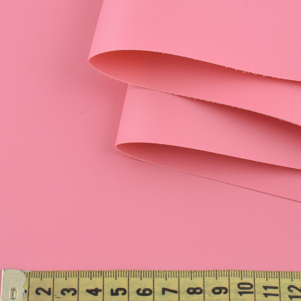 Ткань ПВХ 190D розовая, ш.150. Состав ткани: Полиуретан-30, Полиэстер-70. Плотность ткани: 291 г/м.кв. Страна производитель: Южная Корея. Ткань ПВХ - это прочный, гладкий материал, очень плотный. Благодаря особому плетению, обладает износостойкостью и водоотталкивающим свойством. Устойчива к загрязнениям. Используется для пошива спецодежды, обуви, сумок, рюкзаков, различных акссесуаров для походов, палаток, спальных мешков, тентов и многого другого.¶¶