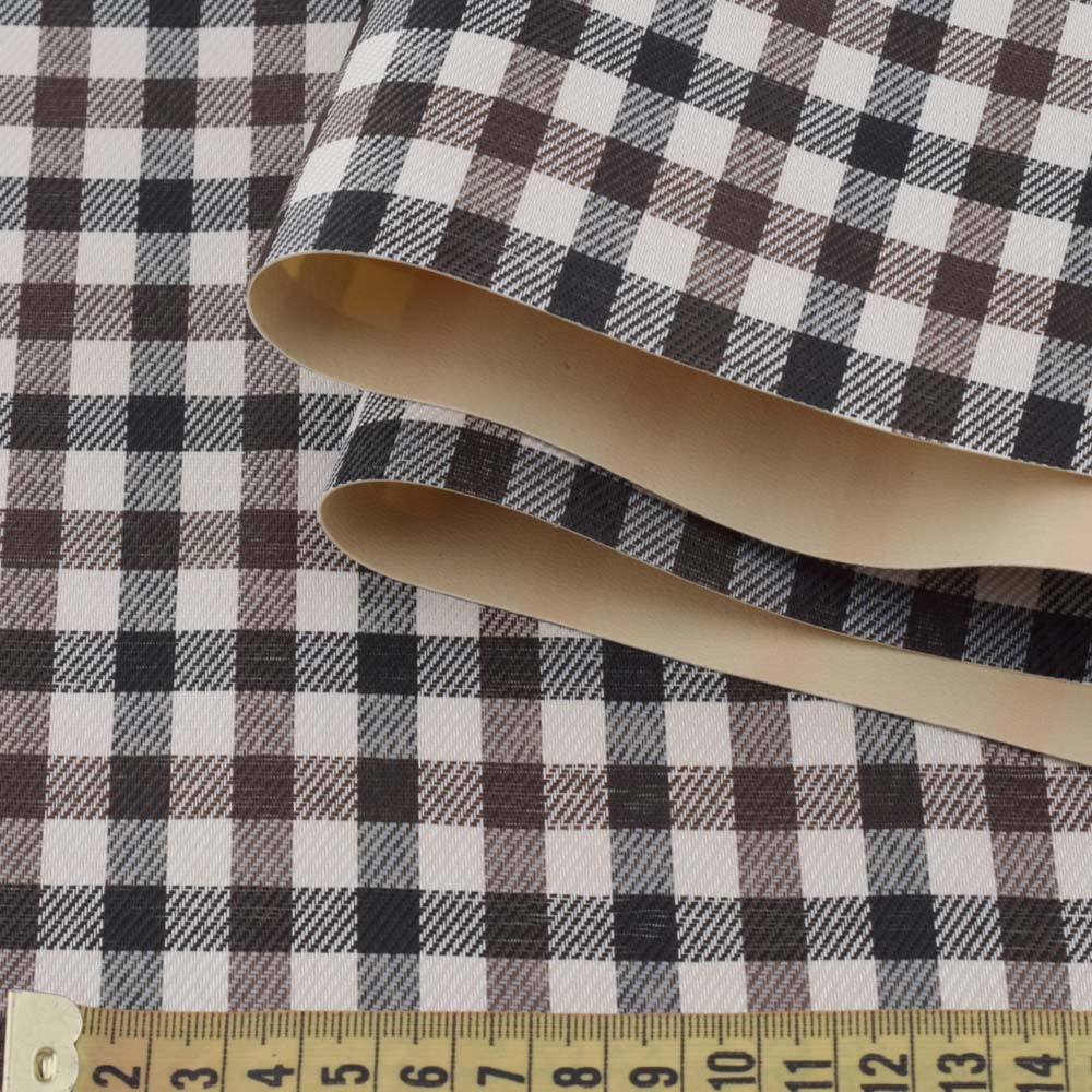 Ткань ПВХ молочная в коричнево-черную клетку, ш.150 купить в розницу и оптом