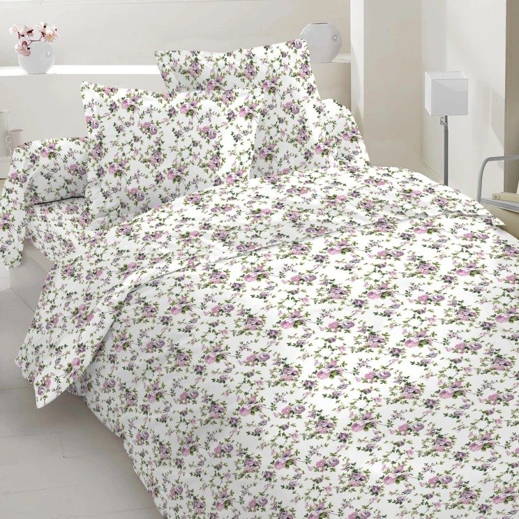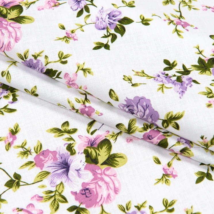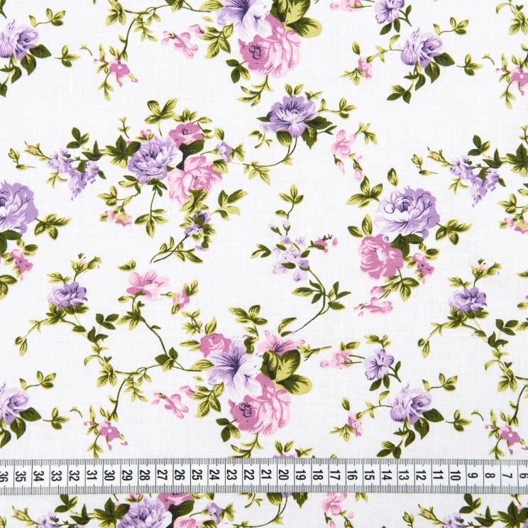 Бязь набивная белая, сиреневые розочки ш.220, Хлопок-52, Полиэстер-48, ш.220, п/п 118, Страна производитель: Украина. Бязь - легкая, гигроскопичная, прочная, шлифованная ткань. Высокая степень обработки нити делает материал гладким и приятным на ощупь, очень прочным и износостойким, устойчивым к деформации и выгоранию. Выдерживает большое количество стирок, сохраняя свой внешний вид и характеристики.