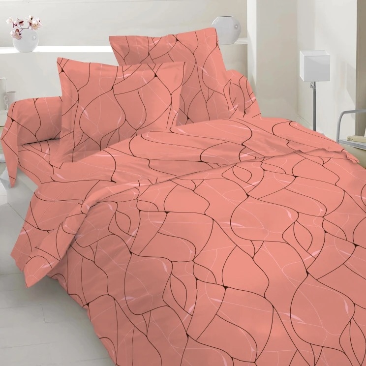 Бязь набивная коралловая, черно-белый абстрактный рисунок, ш.220 купить в розницу и оптом