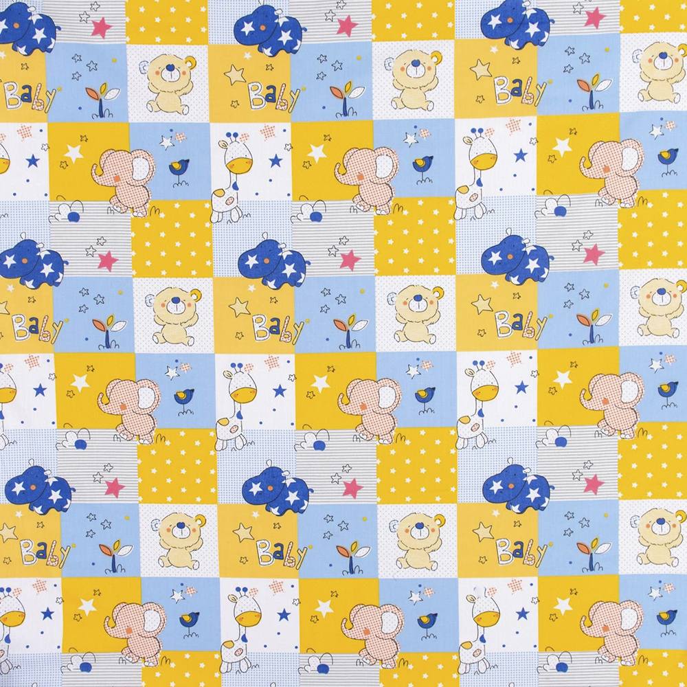 Бязь набивная желто-голубые квадраты BABY игрушки, ш.220 купить в розницу и оптом