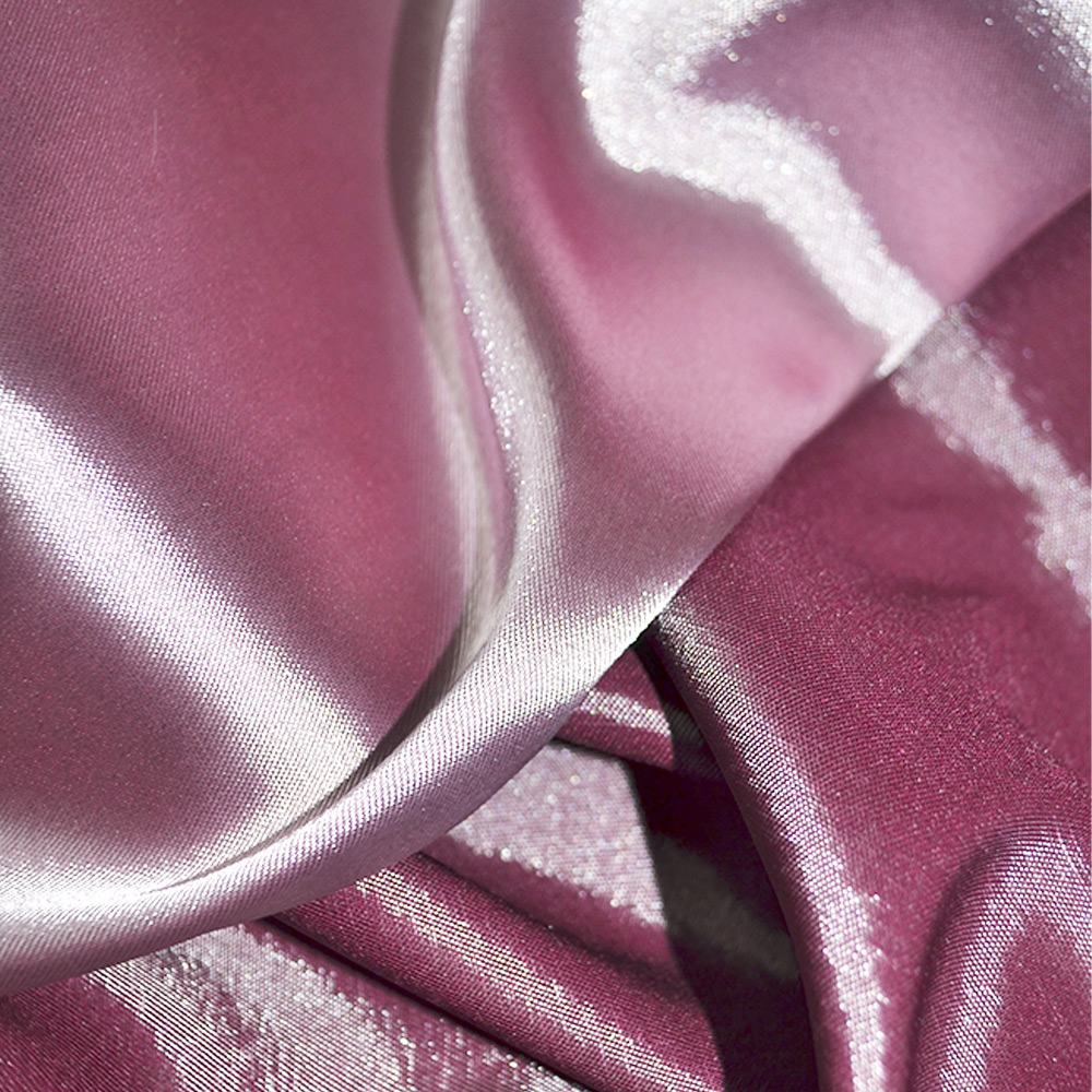 Атлас стрейч хамелеон сиренево-розовый, ш.150. Состав ткани: Полиамид-48, Полиэстер-50, Эластан-2. Плотность ткани: 167 г/м.кв. Страна производитель: Южная Корея. Самой популярной тканью, которая используется при пошиве свадебных и вечерних платьев, вот уже много лет является атлас. С арабского языка это слово переводится как «гладкий» и оно с точностью характеризует внешний вид этого материала. Атлас представляет собой плотную шелковую или полушелковую ткань атласного переплетения, при котором нить утка выходит на лицевую сторону через пять и более нитей основы.