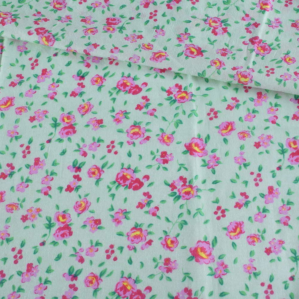 Батист мятный в розово-желтые розы, ш.140 купить в розницу и оптом