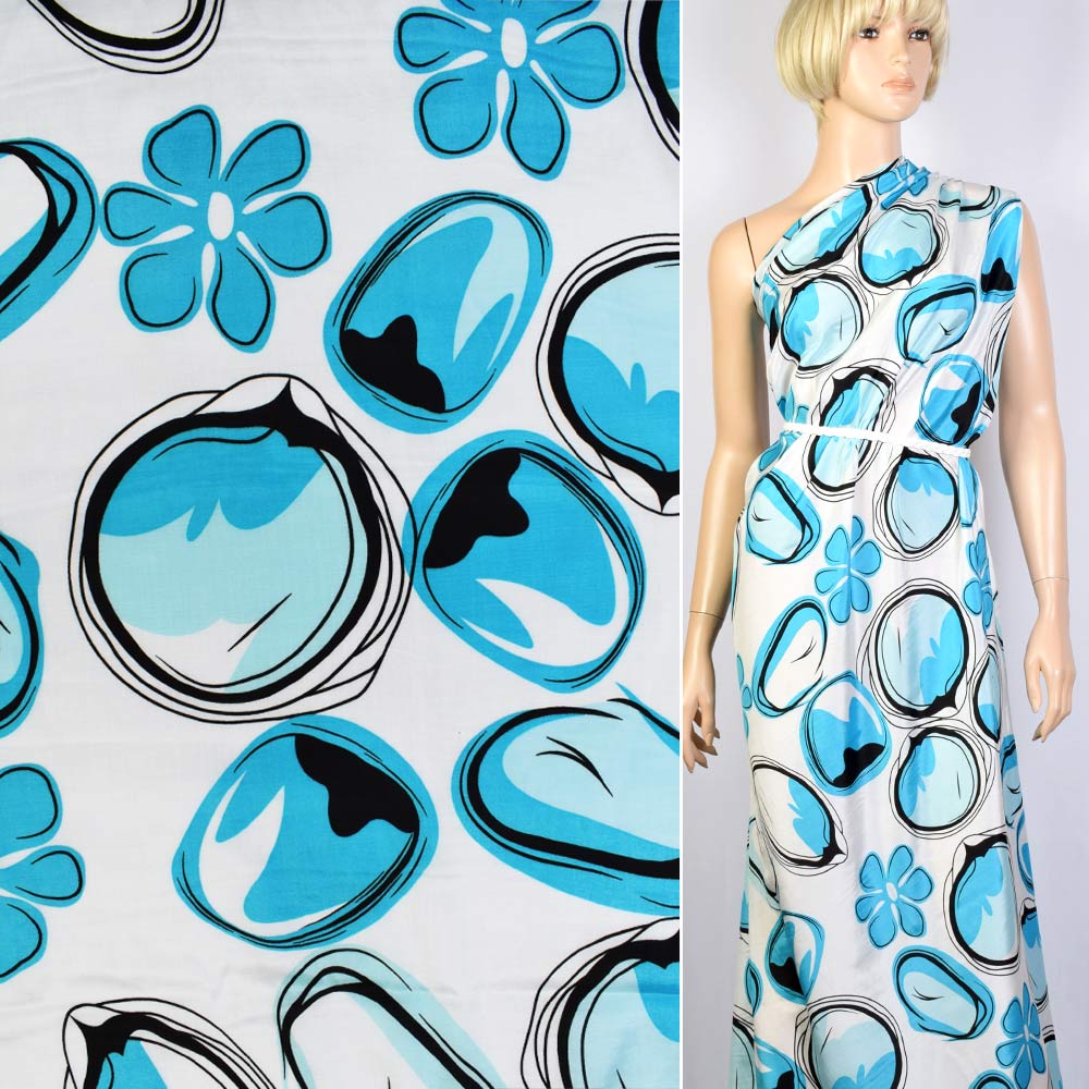 Купра белая в черно-голубые капли и цветы ш.145 купить в розницу и оптом