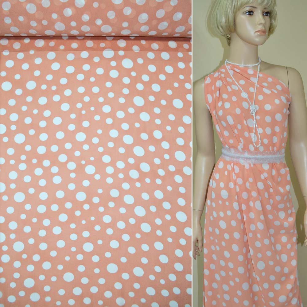 Креп-шифон бледно-оранжевый в белые круги ш.150 купить в розницу и оптом