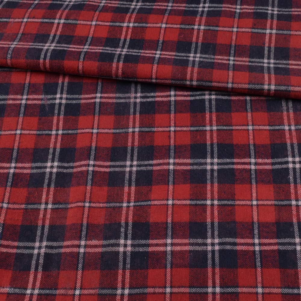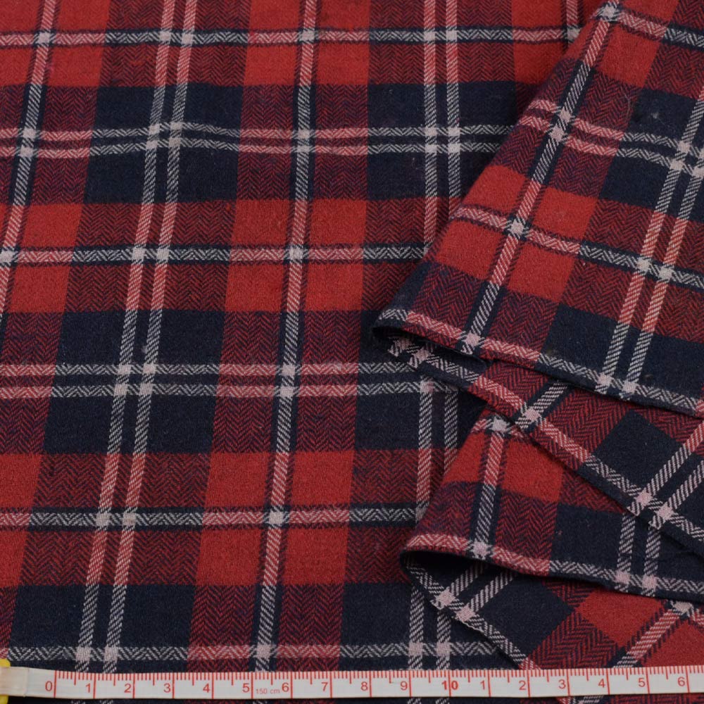 Фланель* рубашечная красная в синюю клетку ш.145 (2 сорт). Состав ткани: Хлопок-90, Полиэстер-10. Плотность ткани: 177 г/м.кв. Страна производитель: Южная Корея. Фланель - мягкий, теплый, натуральный материал с ворсистой поверхностью. Ткань не растягивается, не теряет со временем форму, не выстирывается цвет. Это теплый гигроскопический материал, очень теплый и легкий в уходе. При носке не мнется и не деформируется. Фланель используют для пошива рубашек, пижам, подклада для верхней одежды, покрывал, домашних халатов.