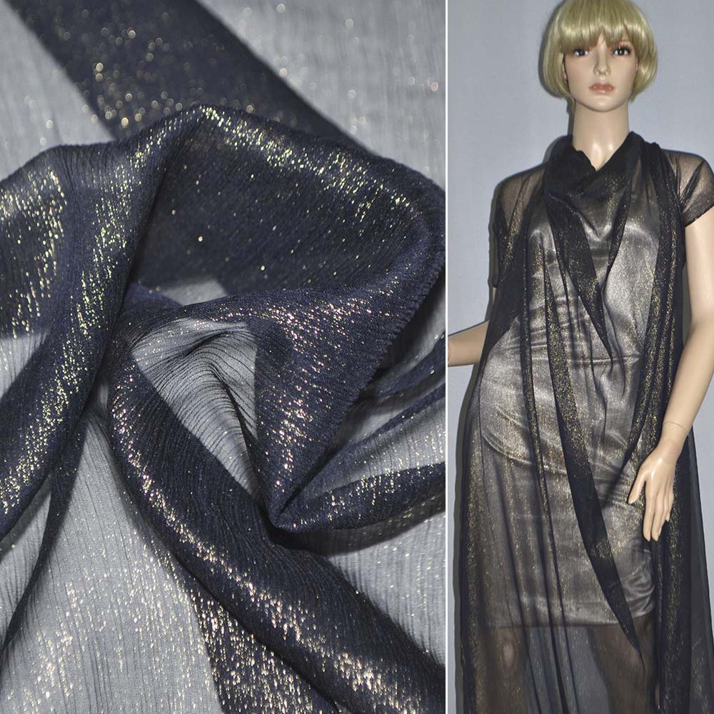 Шелк синий темный с золотым напылением ш.130 купить в розницу и оптом