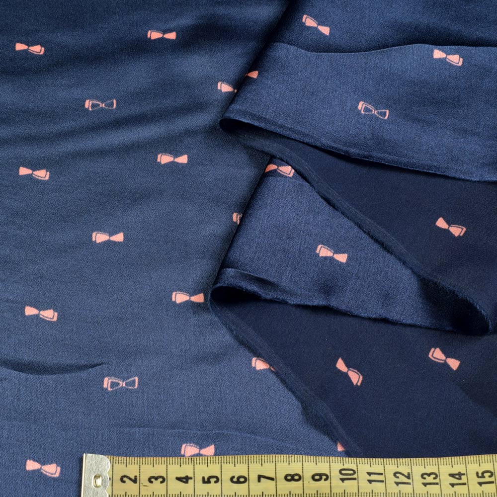 Шелк атласный синий темный в розовые бантики ш.135 купить в розницу и оптом