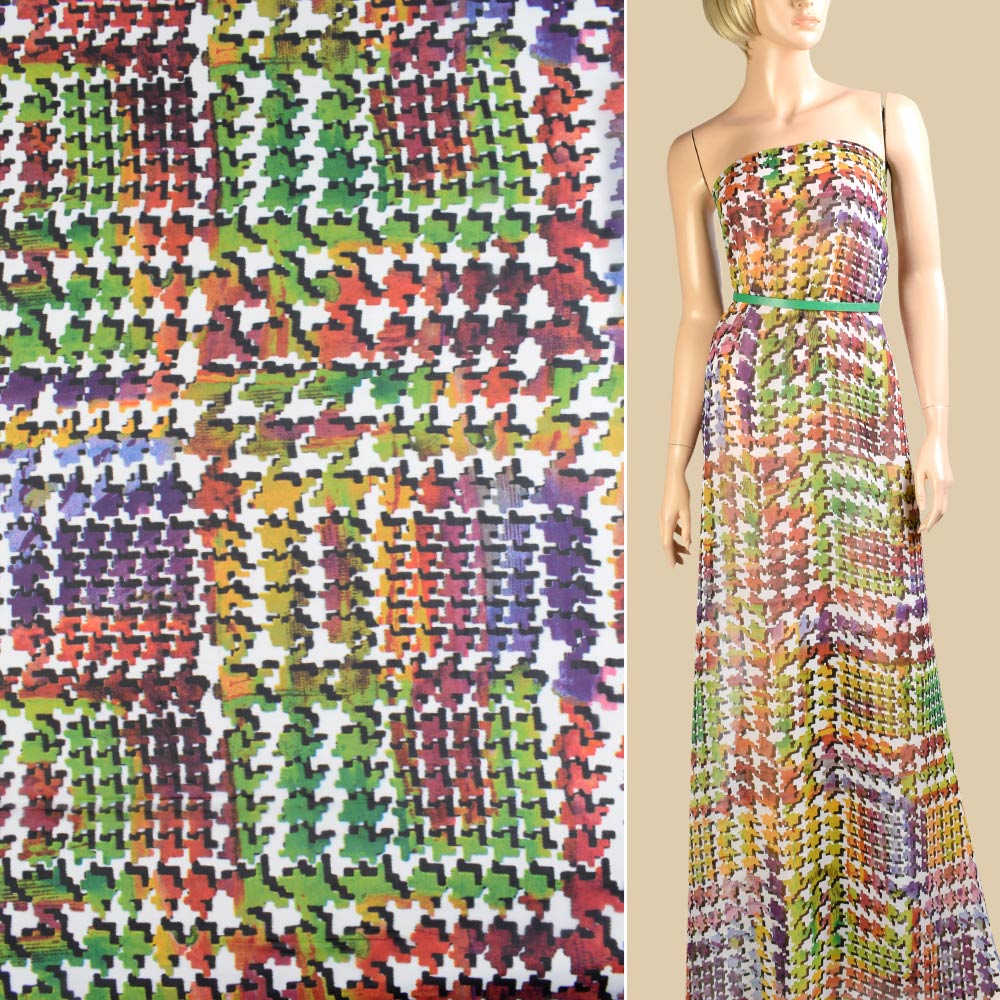 Шифон белый в желто-зеленый абстрактный узор, ш.145. Состав ткани: Полиэстер-100. Плотность ткани: 56 г/м.кв. Страна производитель: Южная Корея. Шифон представляет собой струящийся, воздушный, приятный на ощупь, нежный материал. В жаркое время в одежде из шифона будет комфортно, так как ткань обладает отличной воздухопроницаемостью. Ткань приятно лежит на теле, не раздражает чувствительную кожу. Благодаря своей воздушности, шифон будет отлично смотреться в виде платья, струящейся юбки, создавая легкие складки. При правильном уходе, изделия будут долгое время сохранять свой первоначальный внешний вид. Используется для изготовления летних платьев, блуз, шарфов, штор, аксессуаров и т. д.