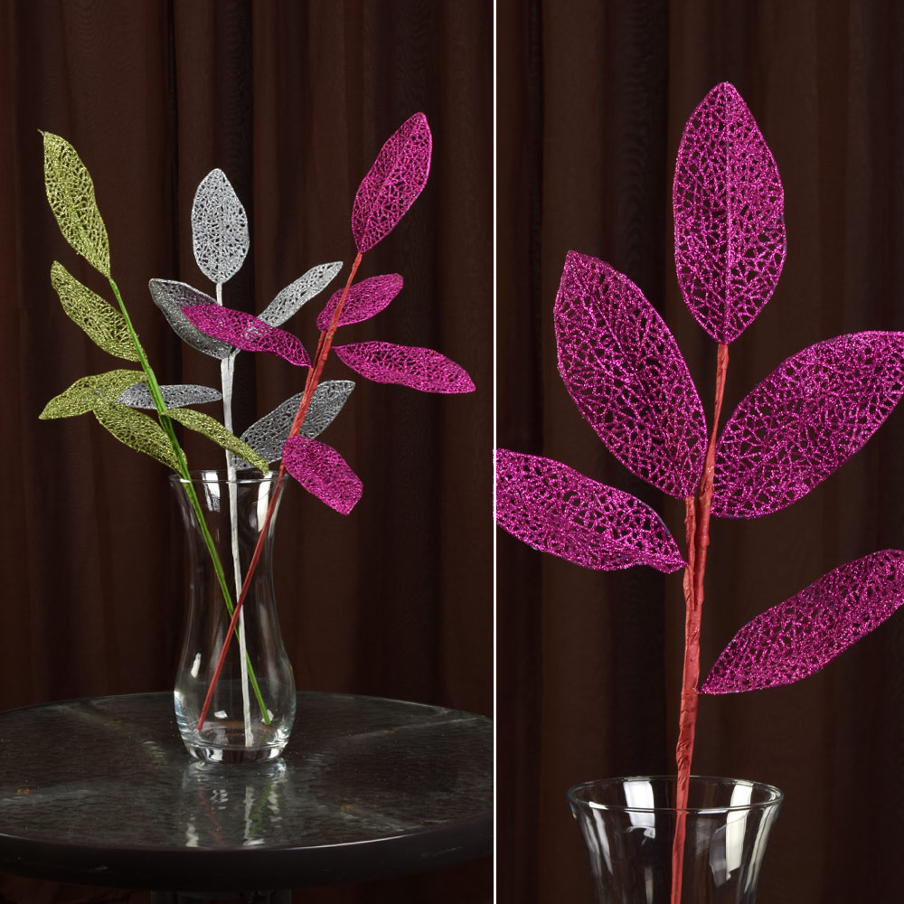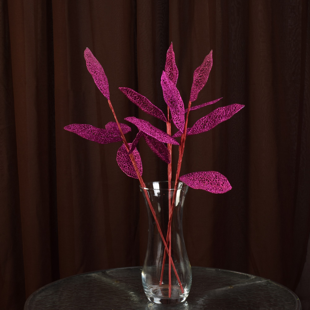 Искусственная веточка 63см с ажурными блестящими листьями розовая купить в розницу и оптом