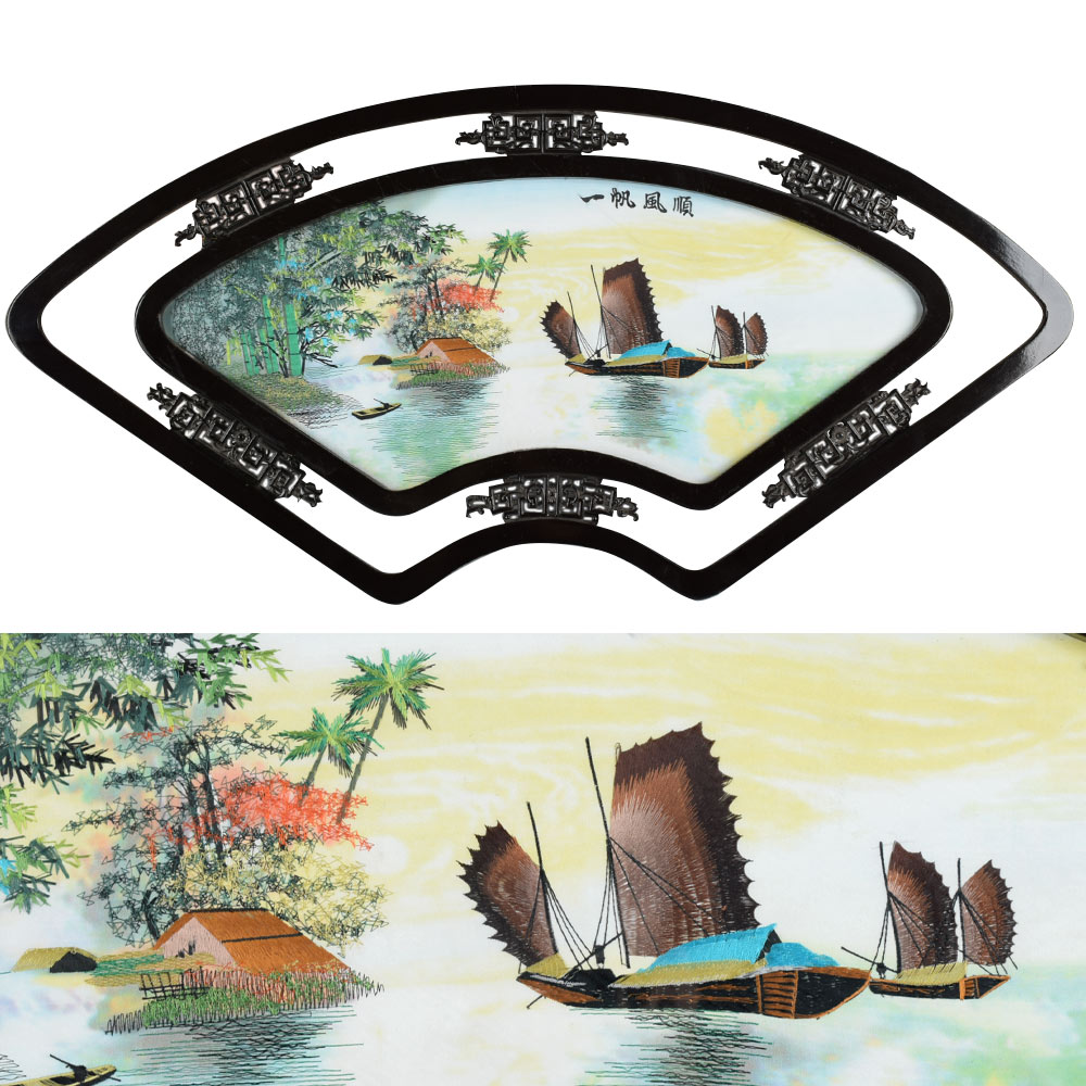 Картина вышитая гладь веер парусник 120х57см. Страна производитель: Китай. Прекрасный вариант интерьерного дизайна, который впишется в любое пространство.