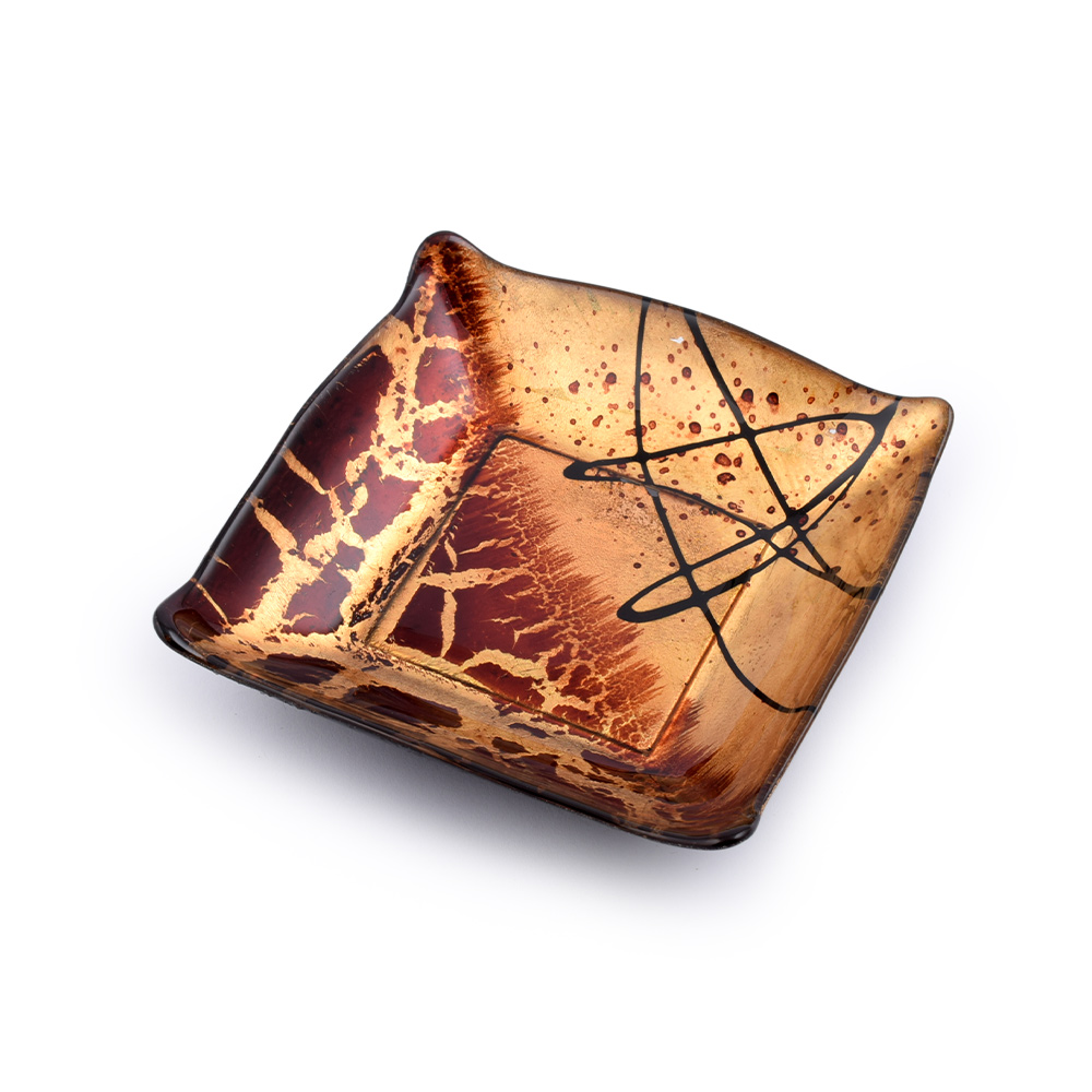 Салатник стеклянный квадратный 14х14х3 см золотистый с коричневым купить в розницу и оптом