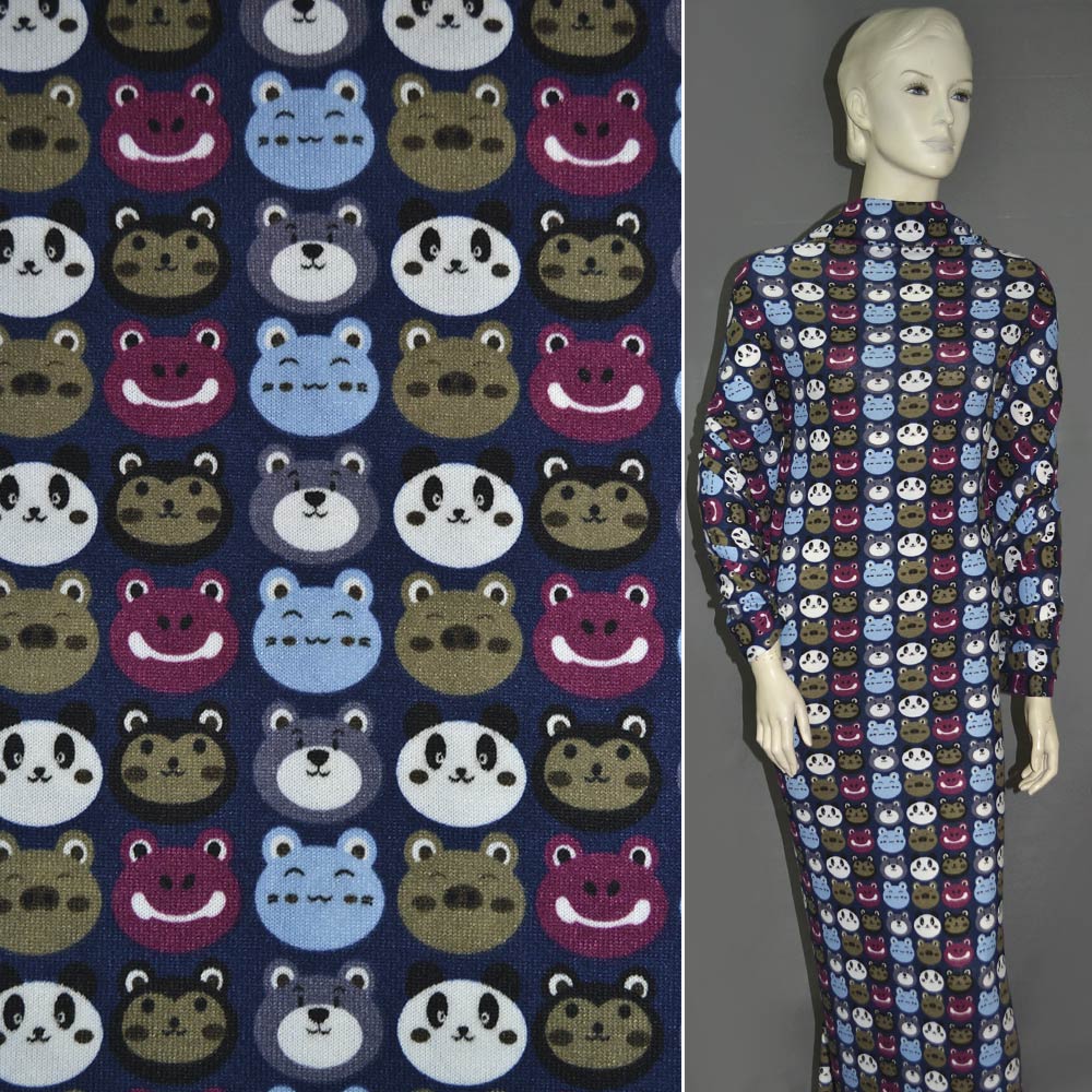 Трикотаж синий с цветными мордочками ш.166. Состав ткани: Полиакрил-85, Шерсть-10, Эластан-5. Плотность ткани: 180 г/м.кв. Страна производитель: Южная Корея. Трикотаж - это мягкая плотная материя, не прозрачная. Приятная на ощупь, комфортная в носке. Благодаря содержанию синтетических материй, материал более износостойкий и надолго сохраняет свой первоначальный вид. Ткань отличается своей приятной текстурой, хорошей растяжимостью, практически не мнется. Трикотаж достаточно простой в уходе. Используется для пошива платьев, спортивных костюмов, легких жакетов, поло, футболок и многого другого.