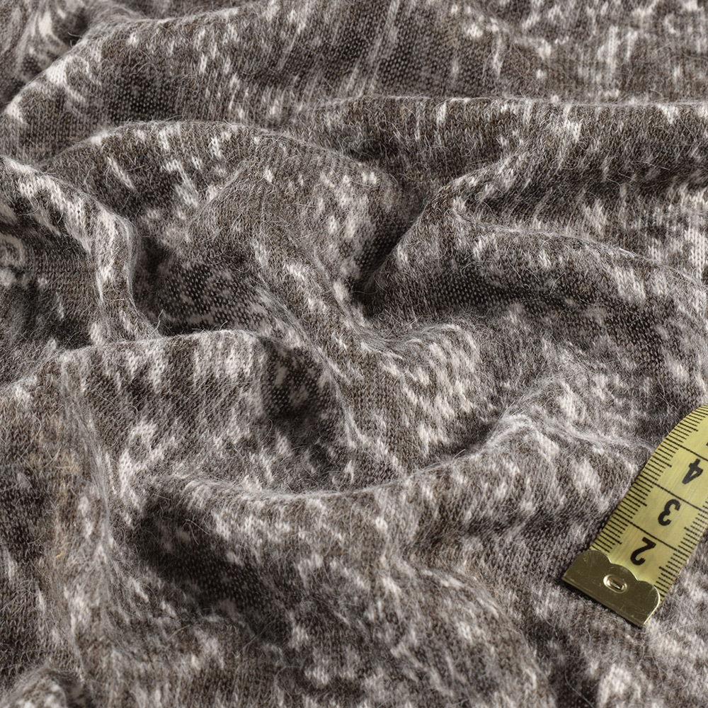 Трикотаж с мохером коричнево-серый с молочными пятнами ш.143 купить в розницу и оптом