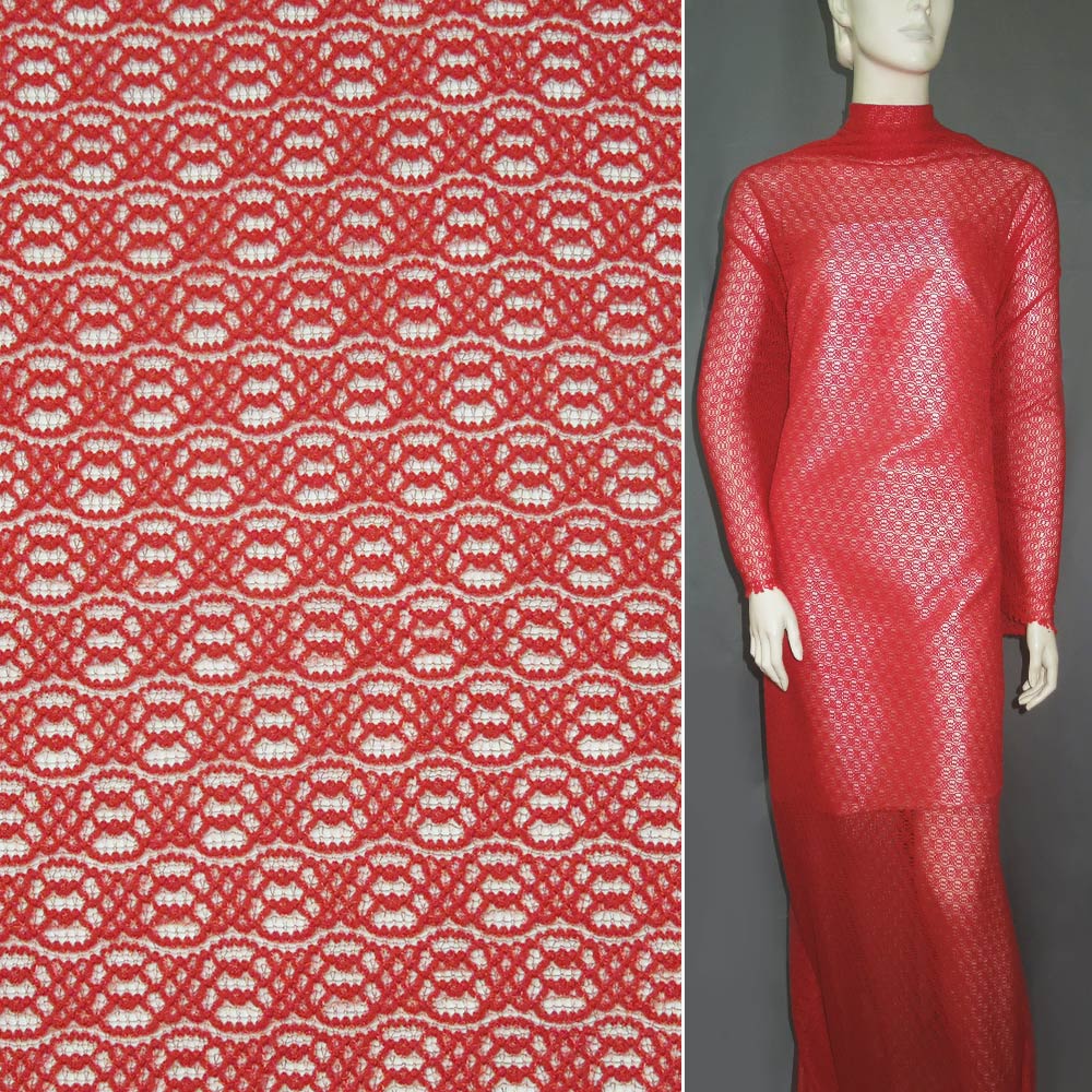 Трикотажное полотно ажурное красное ш.160 купить в розницу и оптом