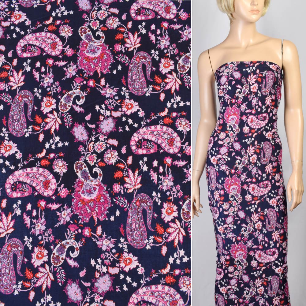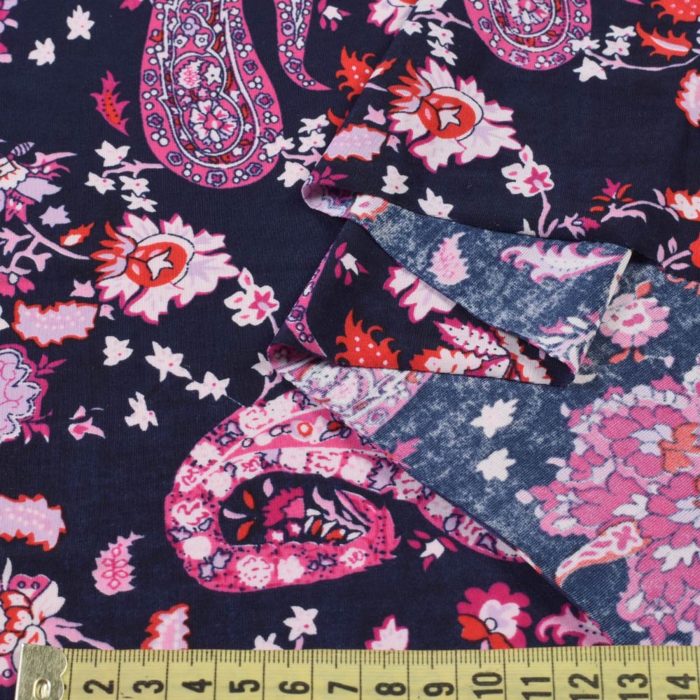 Микролайкра синяя темная с бордово-белыми огурцами и цветами ш.150 купить в розницу и оптом