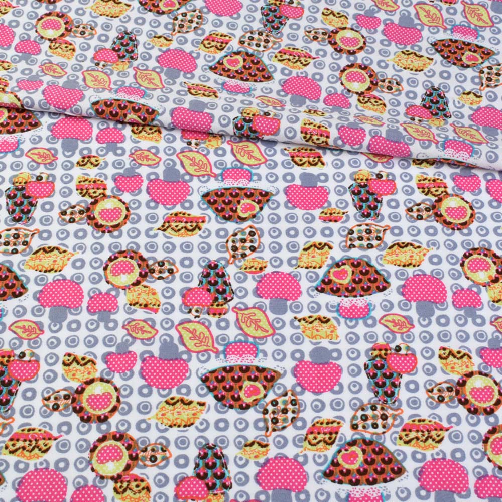 Коттон білий з коричневими і рожевими грибочками, ш.148 купить в розницу и оптом