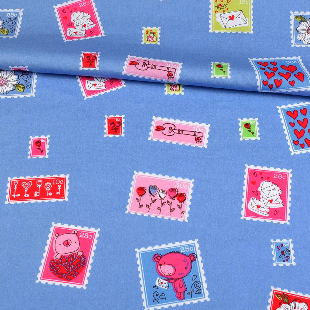 Коттон блакитний, різнокольорові марки, ш.148 купить в розницу и оптом
