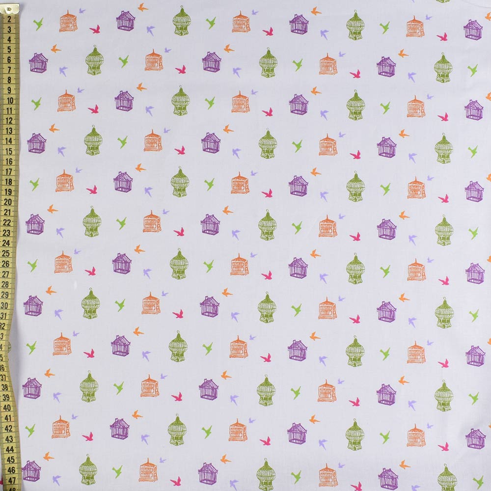 Коттон бузковий блідий, різнокольорові птиці і пташині клітки, ш.147 купить в розницу и оптом