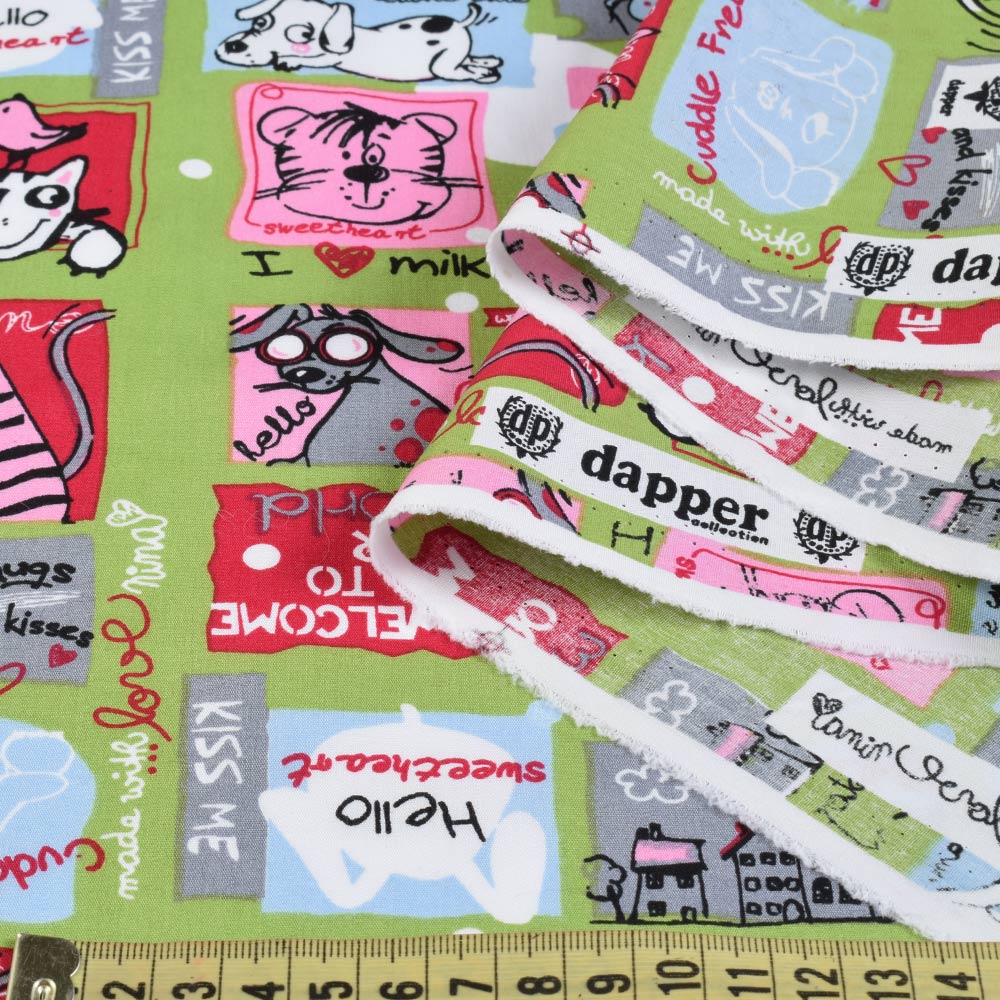 Коттон зелений, різнокольорові кішки, мишки, собачки, ш.148 купить в розницу и оптом