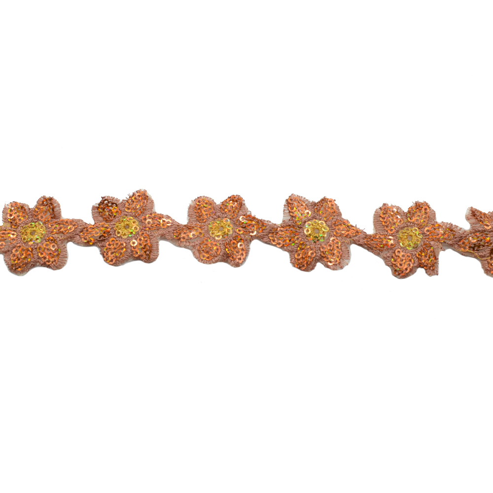 Тасьма пришивна з паєтками на капроні 35 мм квіти помаранчево-жовта купить в розницу и оптом
