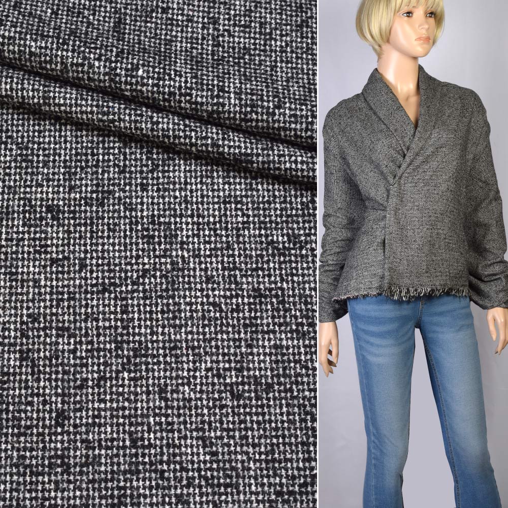 Твід-букле чорно-біле плетиво з вузликами ш.141. Склад тканини: Віскоза-30, Поліестер-50, Бавовна-20. Щільність тканини 297 г/м.кв. Країна виробник: Південна Корея. Твід – це щільна, тепла та м'яка тканина. Використовується для пошиття костюмів, верхнього одягу для чоловіків та жінок. Має велику кількість позитивних характеристик. Тканина приємна на дотик, має елегантний зовнішній вигляд, характеризується високою міцністю і довговічністю, практично не помається.Дякуємо за ваш вибір.