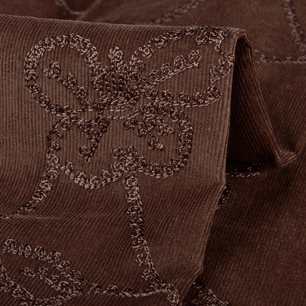 Мікровельвет темно-коричневий, вишитий шовковою ниткою, ш.145. Склад тканини: Бавовна-100. Щільність тканини 243 г/м.кв. Країна виробник: Південна Корея. Вельветова тканина особлива, її неможливо сплутати з іншим матеріалом. За рахунок поздовжніх смуг, покритих ворсом, та незвичайного сяйва, що виникає через гру світла між рядами ворсинок, вона виглядає благородно та креативно. З виворітного боку поверхня нагадує полотно. Завдяки практичності та доступній вартості вельвет набув широкого поширення у текстильному виробництві. З нього шиють найрізноманітніший одяг: сукні, куртки, штани, комбінезони, пальта, головні убори. З цього матеріалу виготовляють оббивку для меблів, чохли до салону автомобіля і навіть взуття.Дякуємо за ваш вибір.