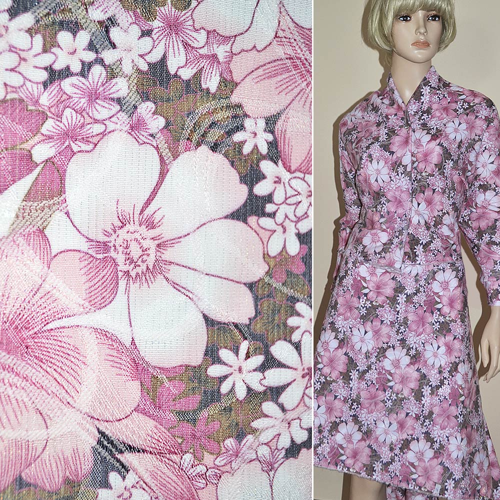 Жаккард костюмний в біло-рожеві квіти з люрексом ш.130 купить в розницу и оптом