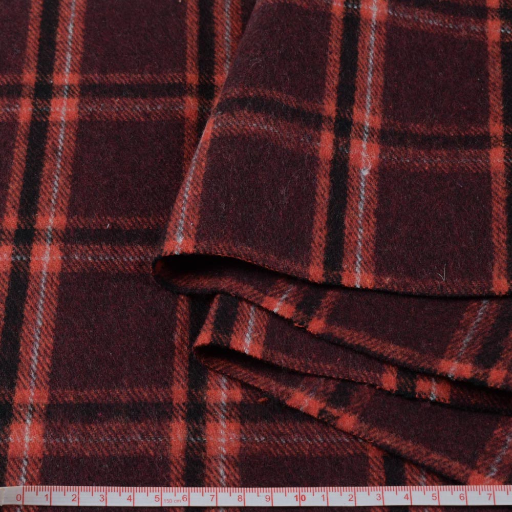 Пальтова тканина в клітинку помаранчеву на коричневому темному тлі, ш.150 купить в розницу и оптом