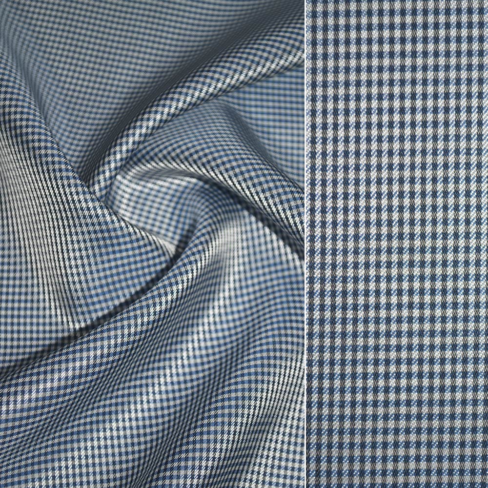 Віскоза підкладкова біла в дрібну синю клітину ш.140. Склад тканини: Ацетат-25, Віскоза-75. Щільність тканини 79 г/м.кв. Країна виробник: Німеччина. Блискуча гладка тканина відмінно підходить для пошиття підкладу у найрізноманітніших виробів. Лицьова сторона тканини виходить гладкою, глянсовою, виворітна сторона - матовою. Сяючий матеріал приємний на дотик і нагадує прохолодну воду.